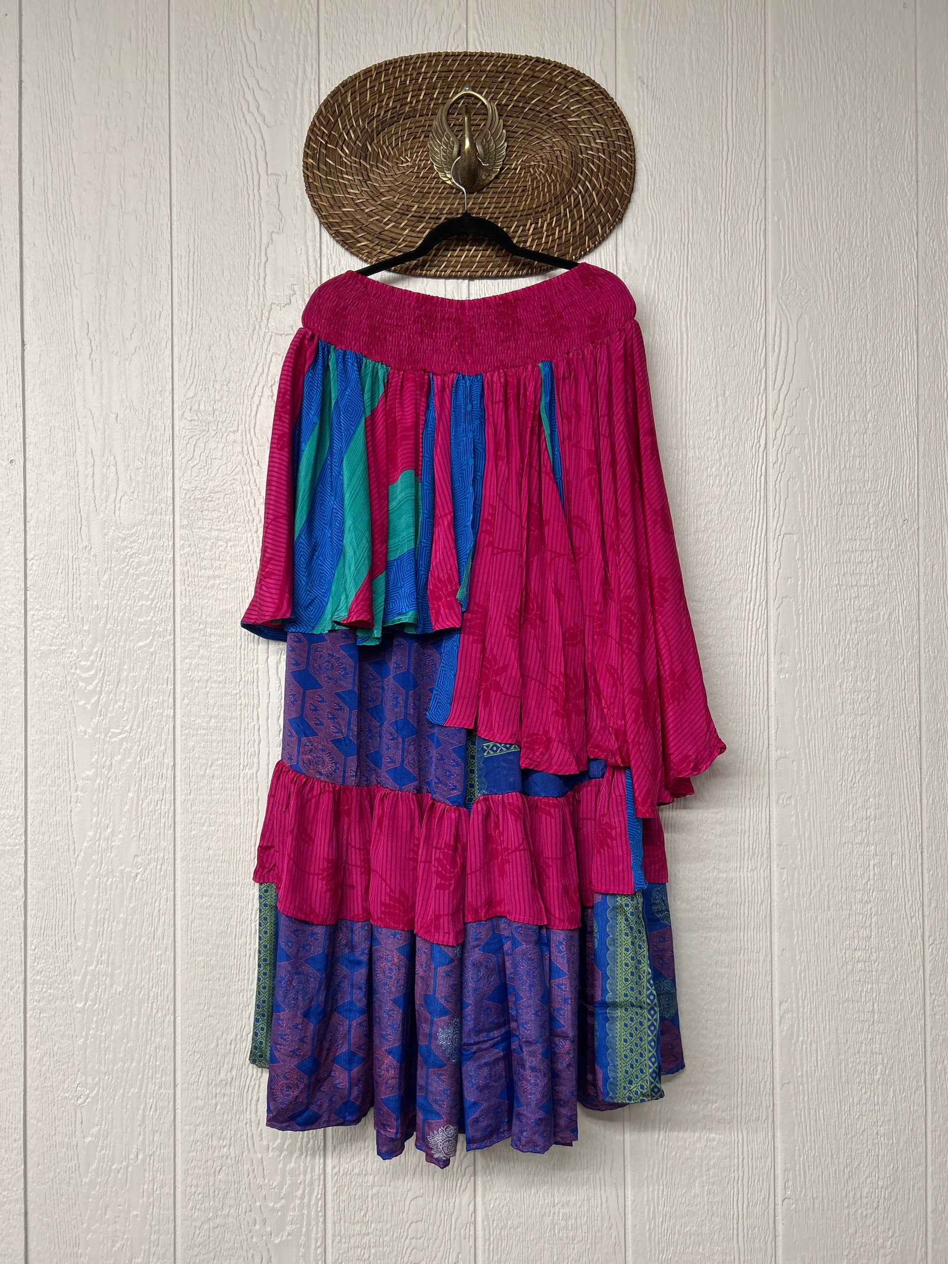 Crafted from vintage rasgulla sari these ethereal pants features stretchy waist, super wide legs, double tier hem and a skirt layer. these pants will make you want to dance! One size, recommended up to size 22/24 Crafted and sewn by families in a small village in Northern India providing work and a fair living. This product should be hand washed and line dried for longest life. For softness, fluff in the dryer on low heat after it has dried from hand washing. Disclosure: Our vintage styles have lived a full life before becoming the designs in our shop. Fabrics may have small threads or holes in the layers. Color inconsistency or small stains may be present. The saris are sewn together and extend the life of each design. Imperfections should be celebrated.