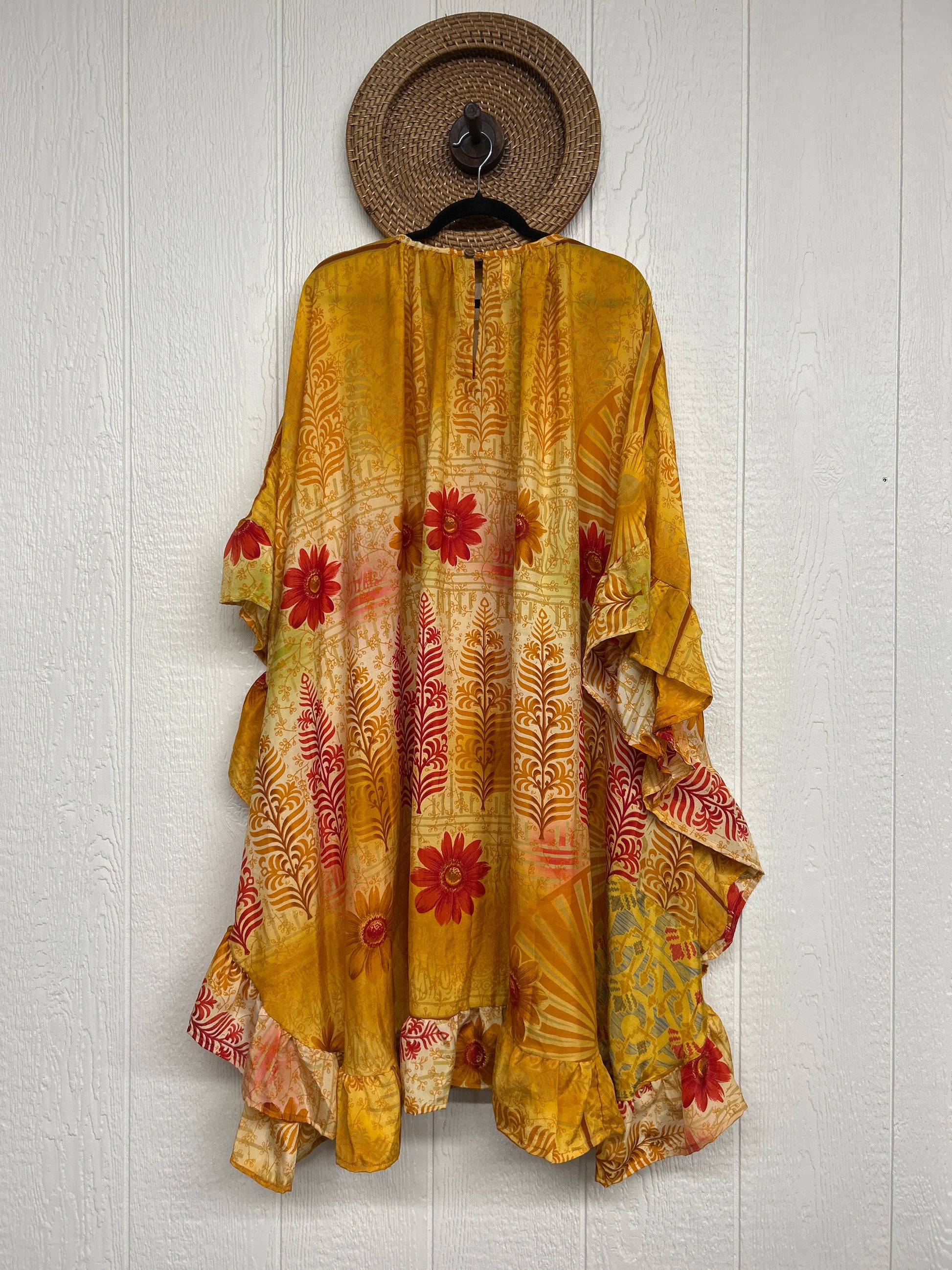 This dreamy muu is crafted from our ultra lux vintage rasgulla sari and features a button down placket and slouchy exterior pockets. Ruffles around the hem make this the ultimate rockstar layer that you can wear closed as a muu or open as a kimono!!