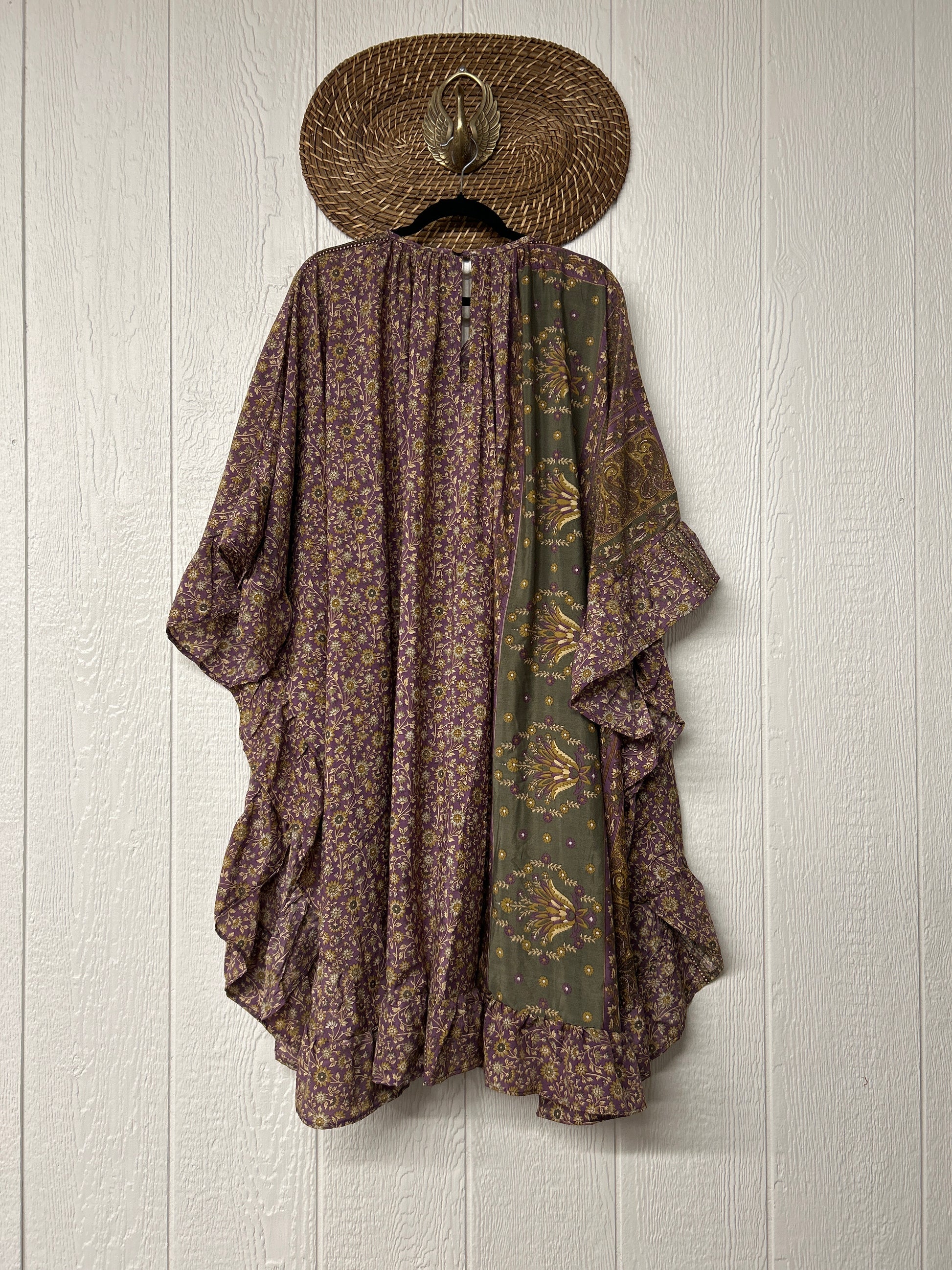 This dreamy muu is crafted from our ultra lux vintage rasgulla sari and features a button down placket and slouchy exterior pockets. Ruffles around the hem make this the ultimate rockstar layer that you can wear closed as a muu or open as a kimono!!