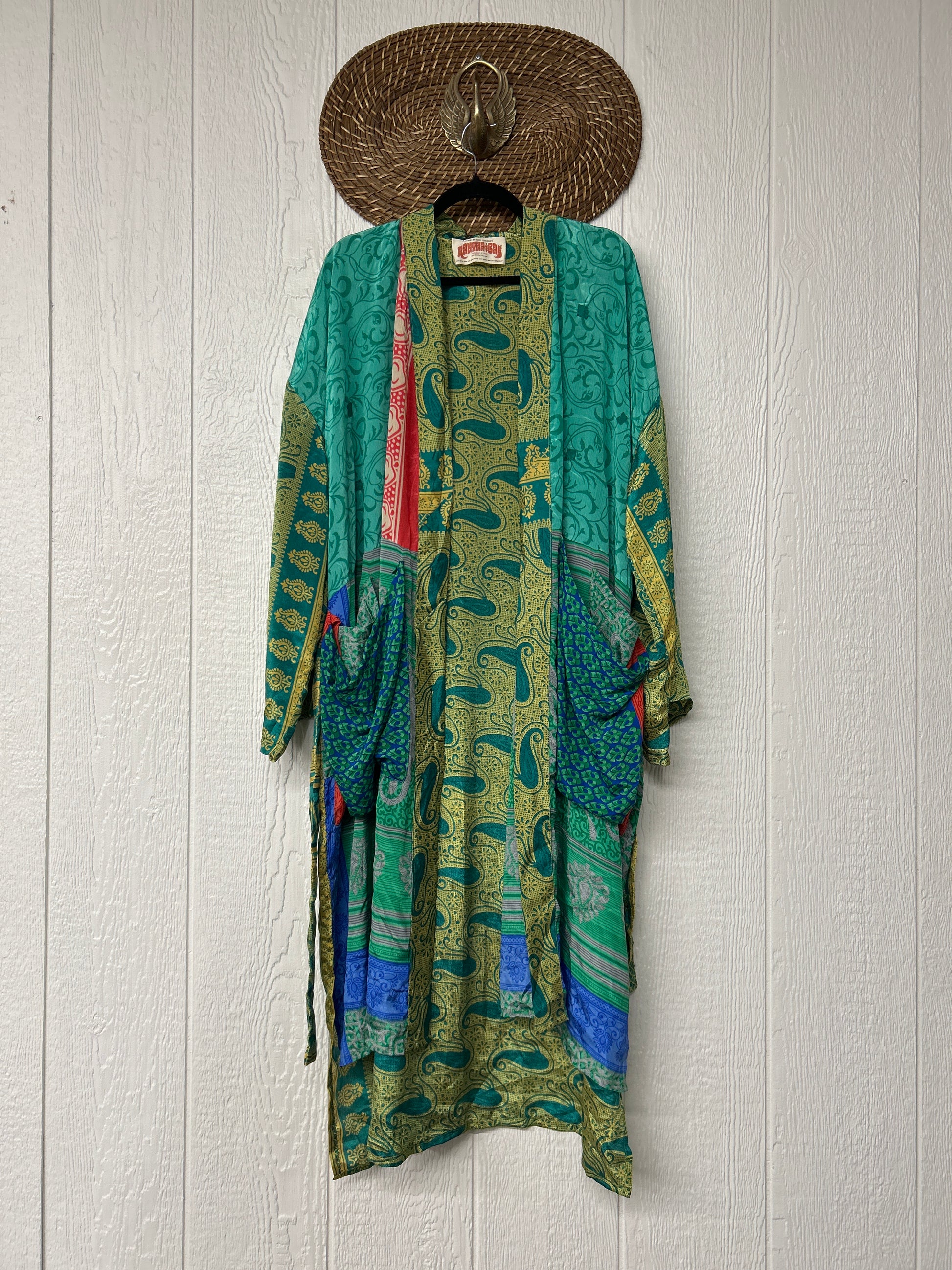 Made from our ultra lux vintage rasgulla sari this dreamy piece features slouchy pockets, a tie sash, and wide dreamy sleeves. Dress the Serenity Kimono up or down to create the ultimate vibe.