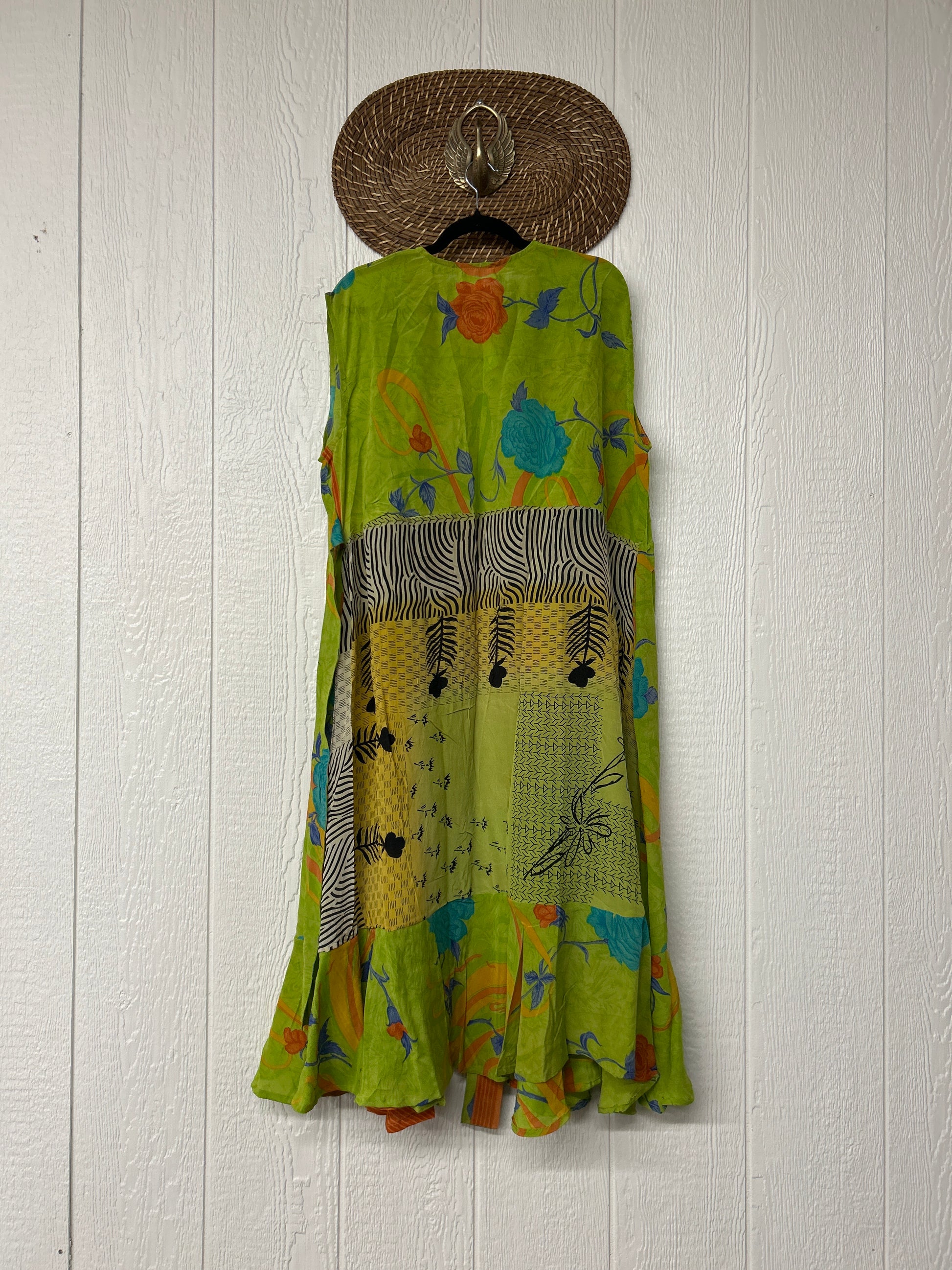 The Rhapsody Kimono Vest is crafted from our ultra lux vintage crepe silk sari. Features ruffle details throughout, interior pockets and a built in sash tie closure to wear open or closed. We're obsessed!