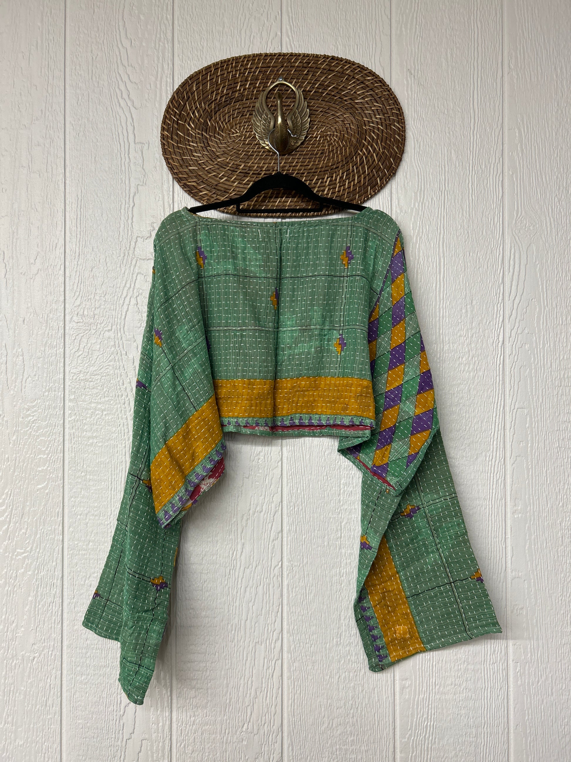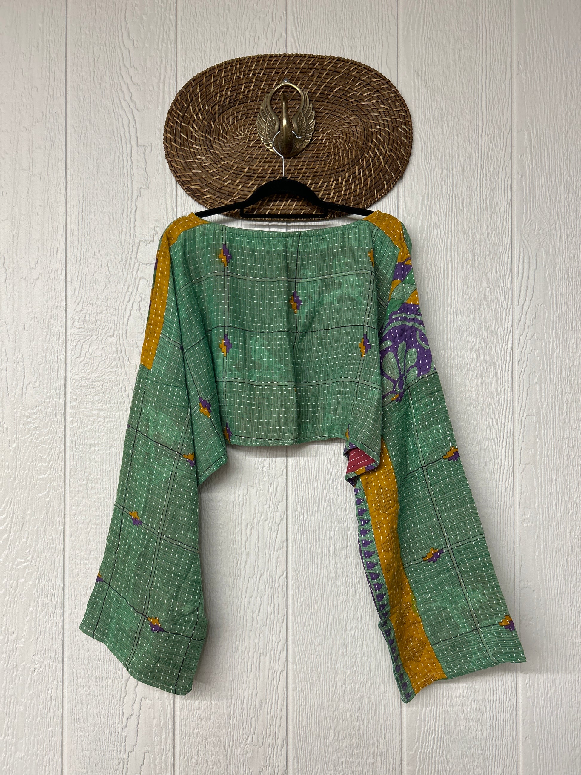 sari. Features long wide sleeves and a funky crop silhouette to wear with all your favorite KB bottoms.