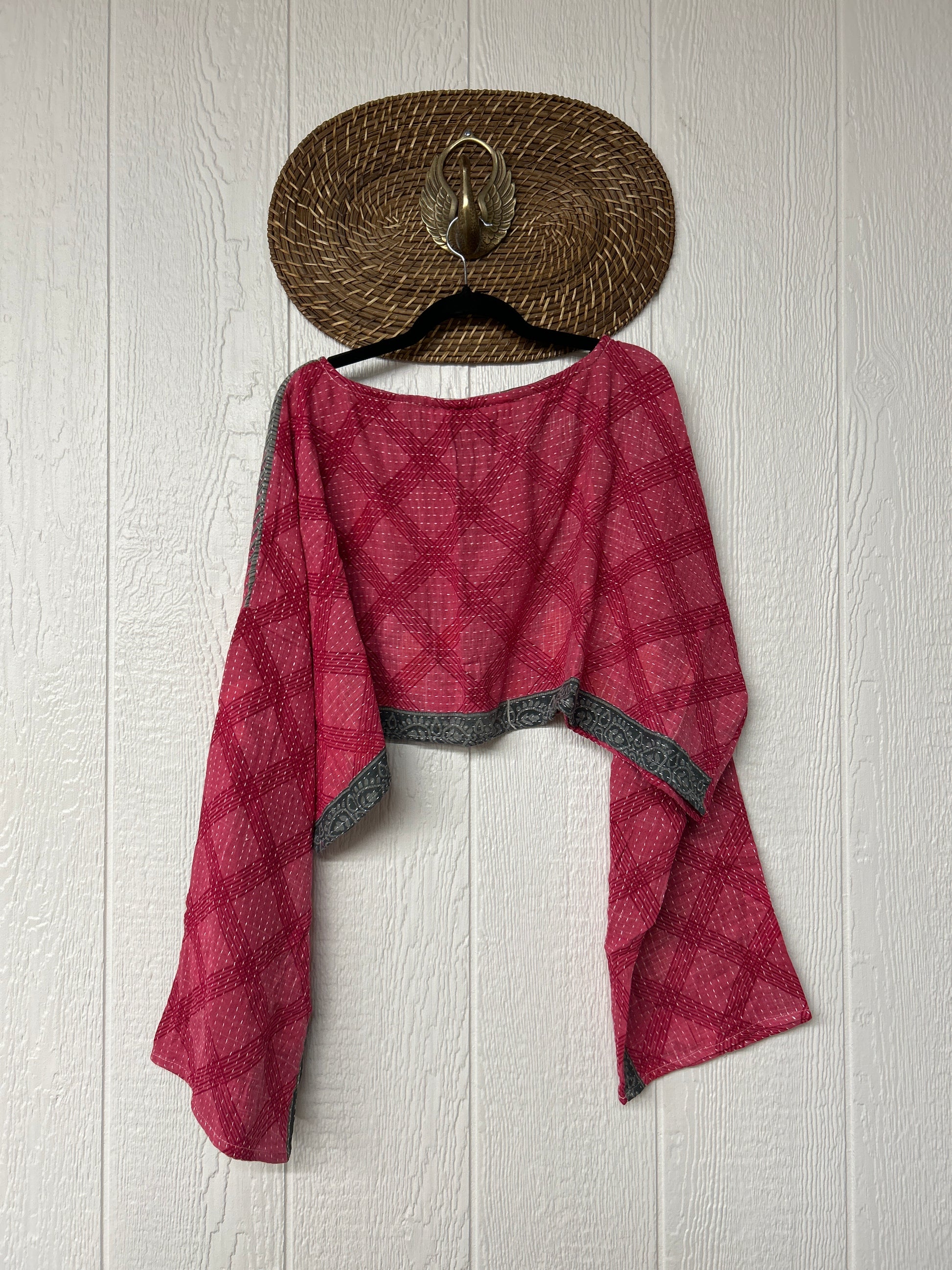 sari. Features long wide sleeves and a funky crop silhouette to wear with all your favorite KB bottoms.