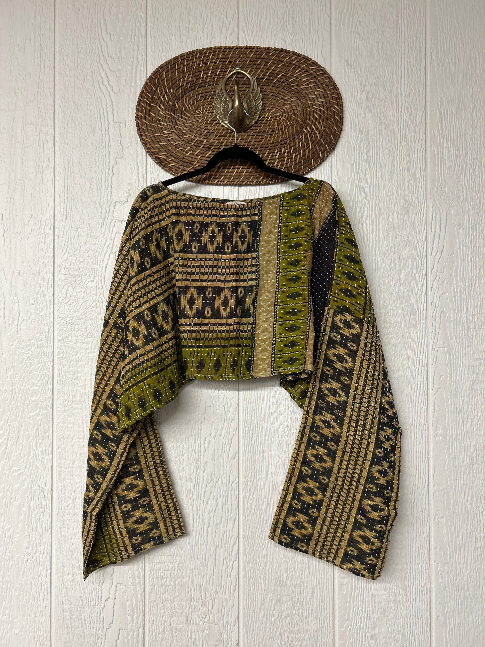 sari. Features long wide sleeves and a funky crop silhouette to wear with all your favorite KB bottoms.