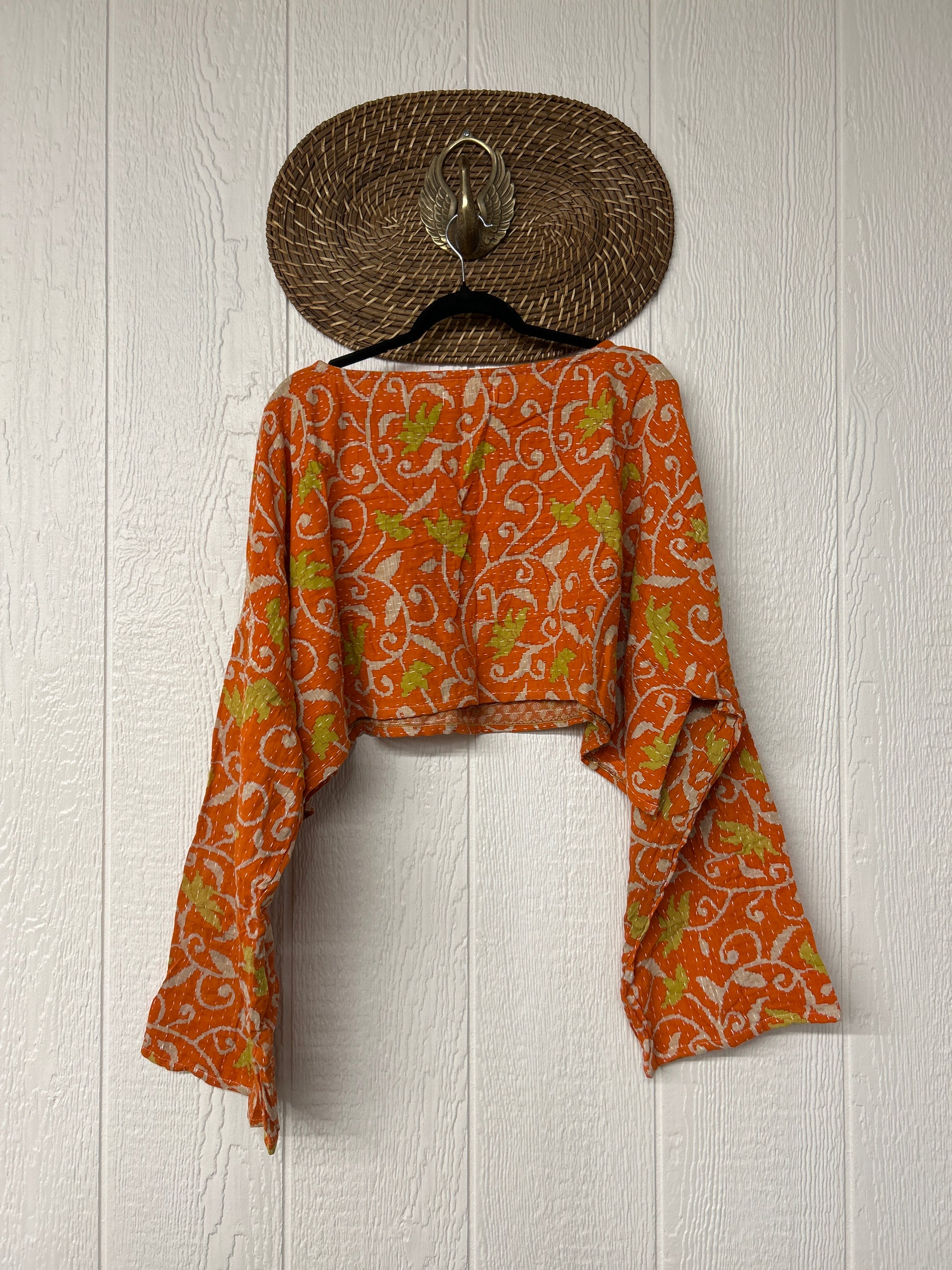 sari. Features long wide sleeves and a funky crop silhouette to wear with all your favorite KB bottoms.
