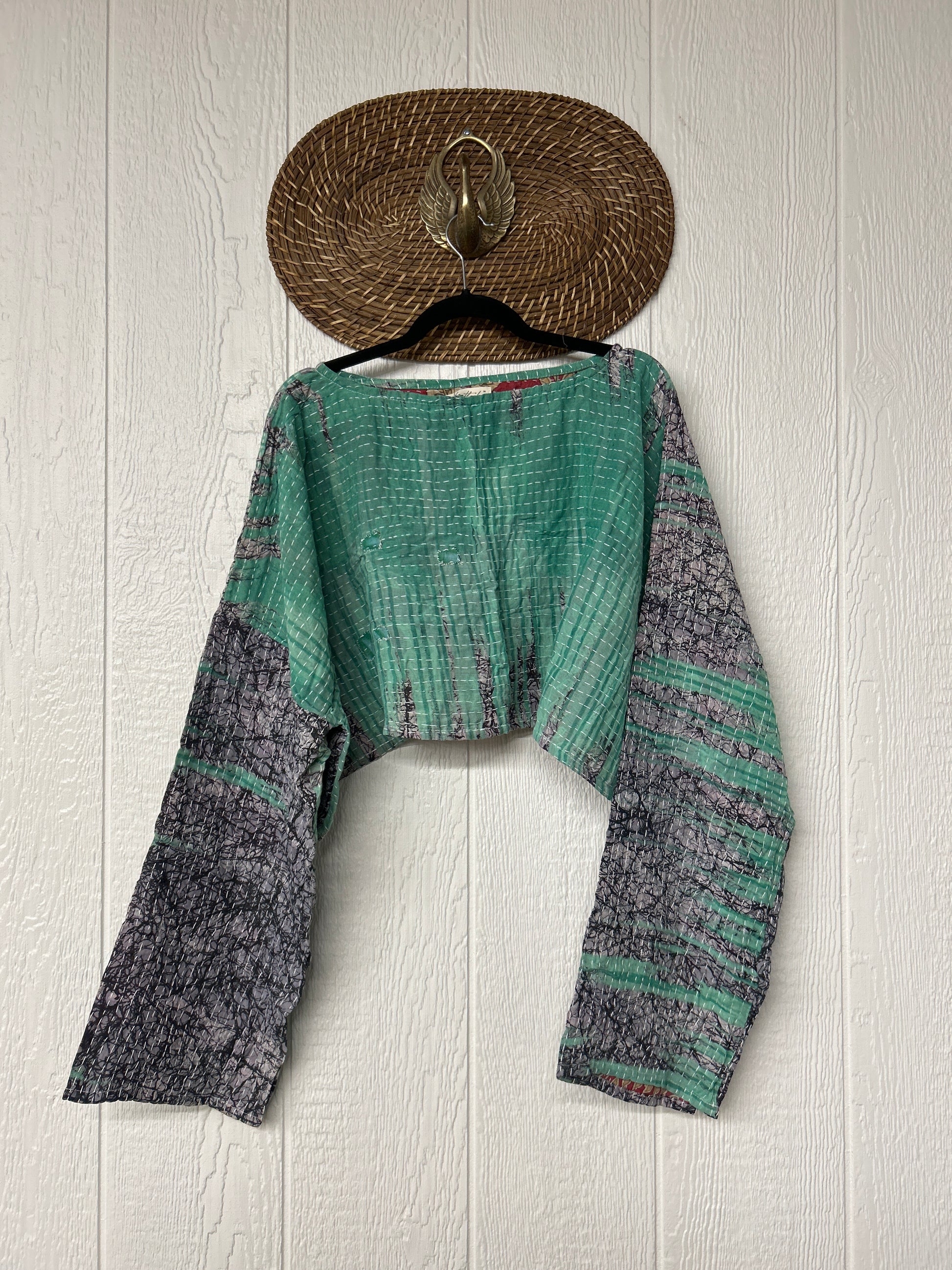 sari. Features long wide sleeves and a funky crop silhouette to wear with all your favorite KB bottoms.