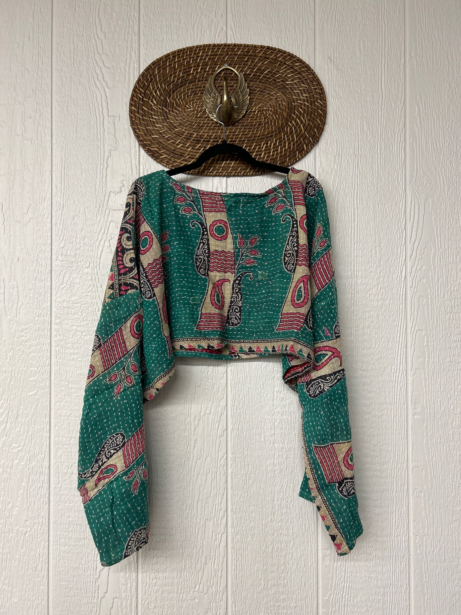 sari. Features long wide sleeves and a funky crop silhouette to wear with all your favorite KB bottoms.