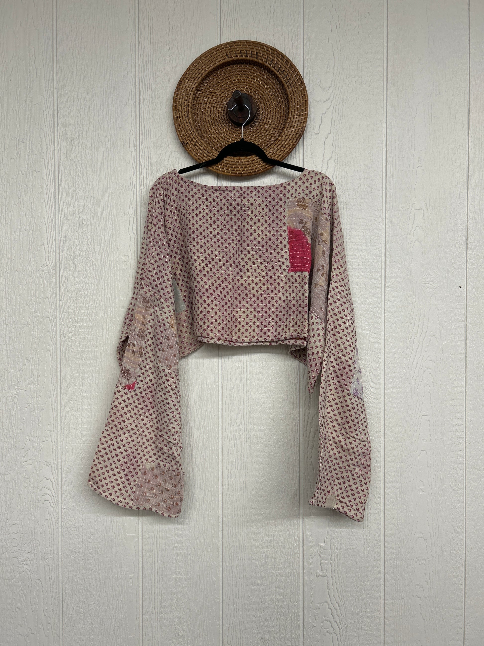 sari. Features long wide sleeves and a funky crop silhouette to wear with all your favorite KB bottoms.