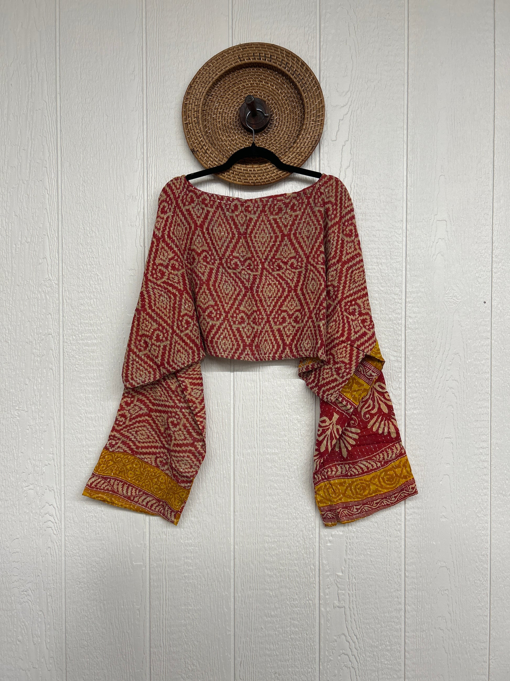 sari. Features long wide sleeves and a funky crop silhouette to wear with all your favorite KB bottoms.
