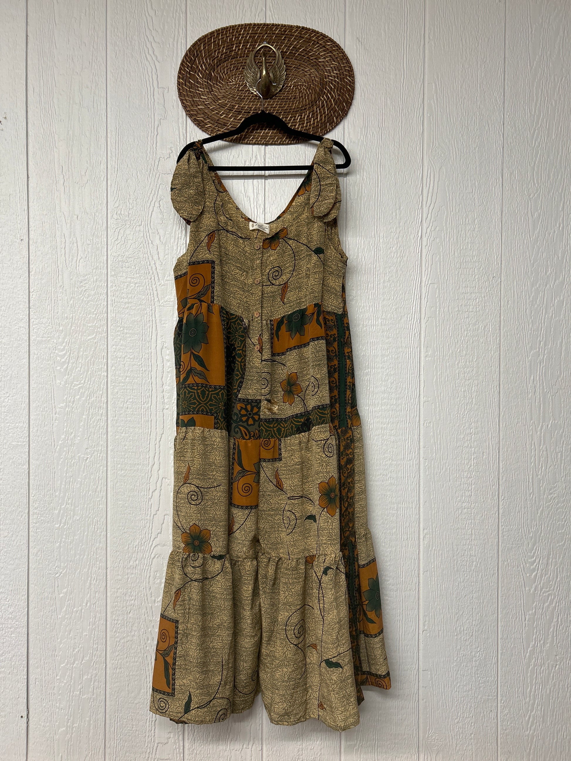 Our Celeste jumpsuit is made from our ultra luxe vintage rasgulla sari.
