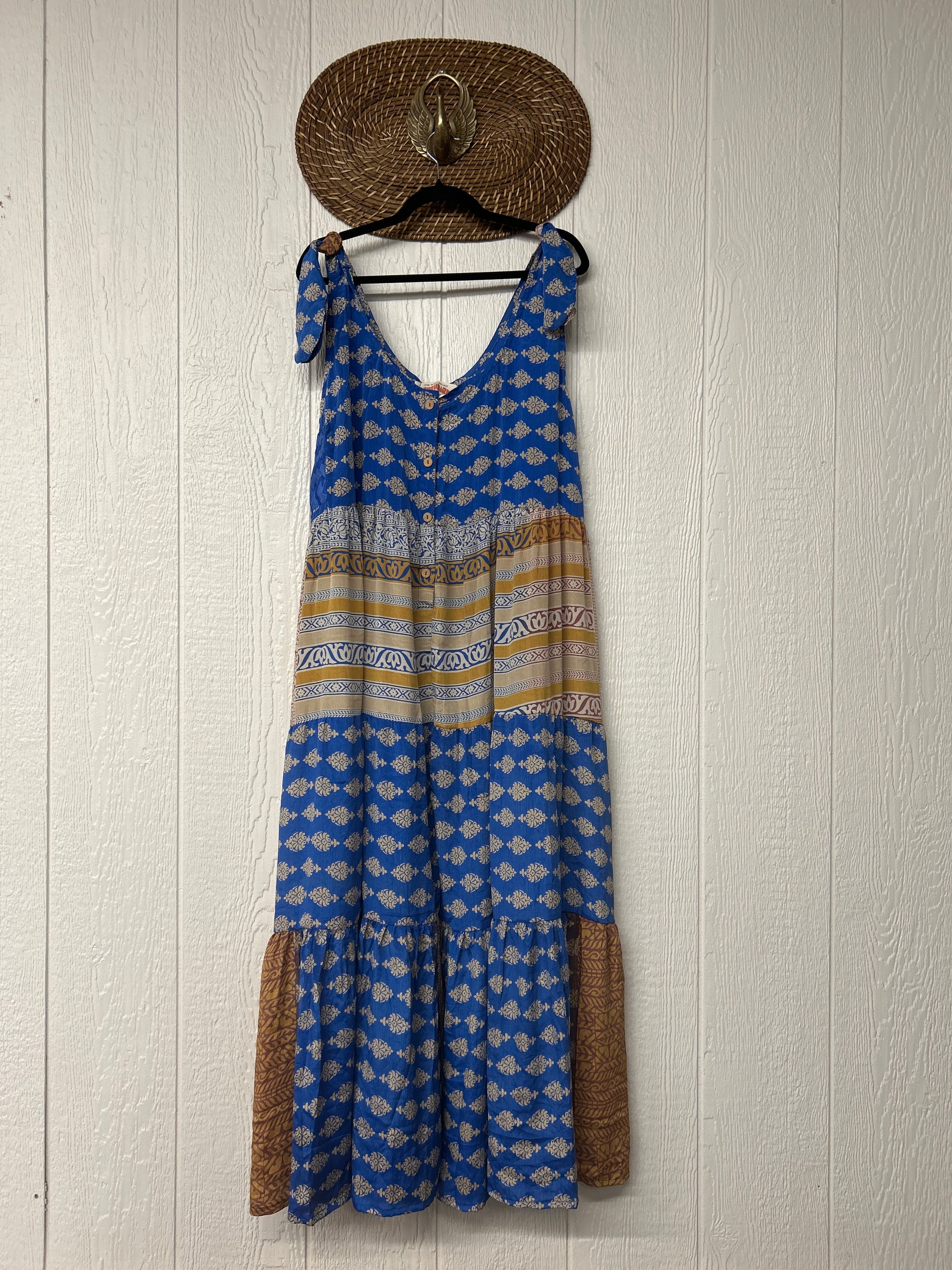 This femine and floaty tiered jumpsuit features tie straps for full customization and pockets.