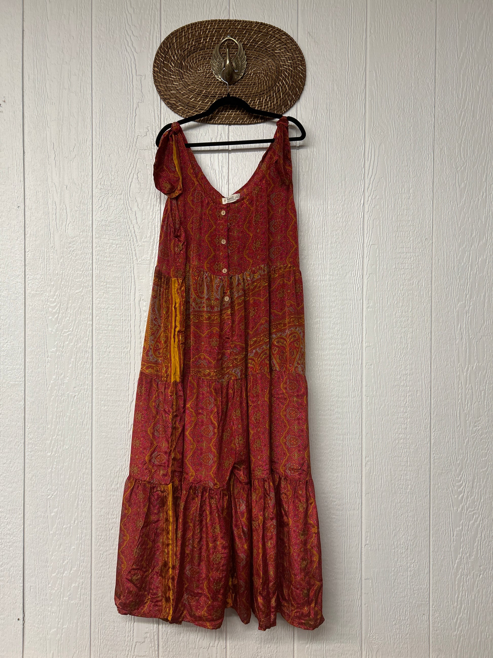 Our Celeste jumpsuit is made from our ultra luxe vintage rasgulla sari.