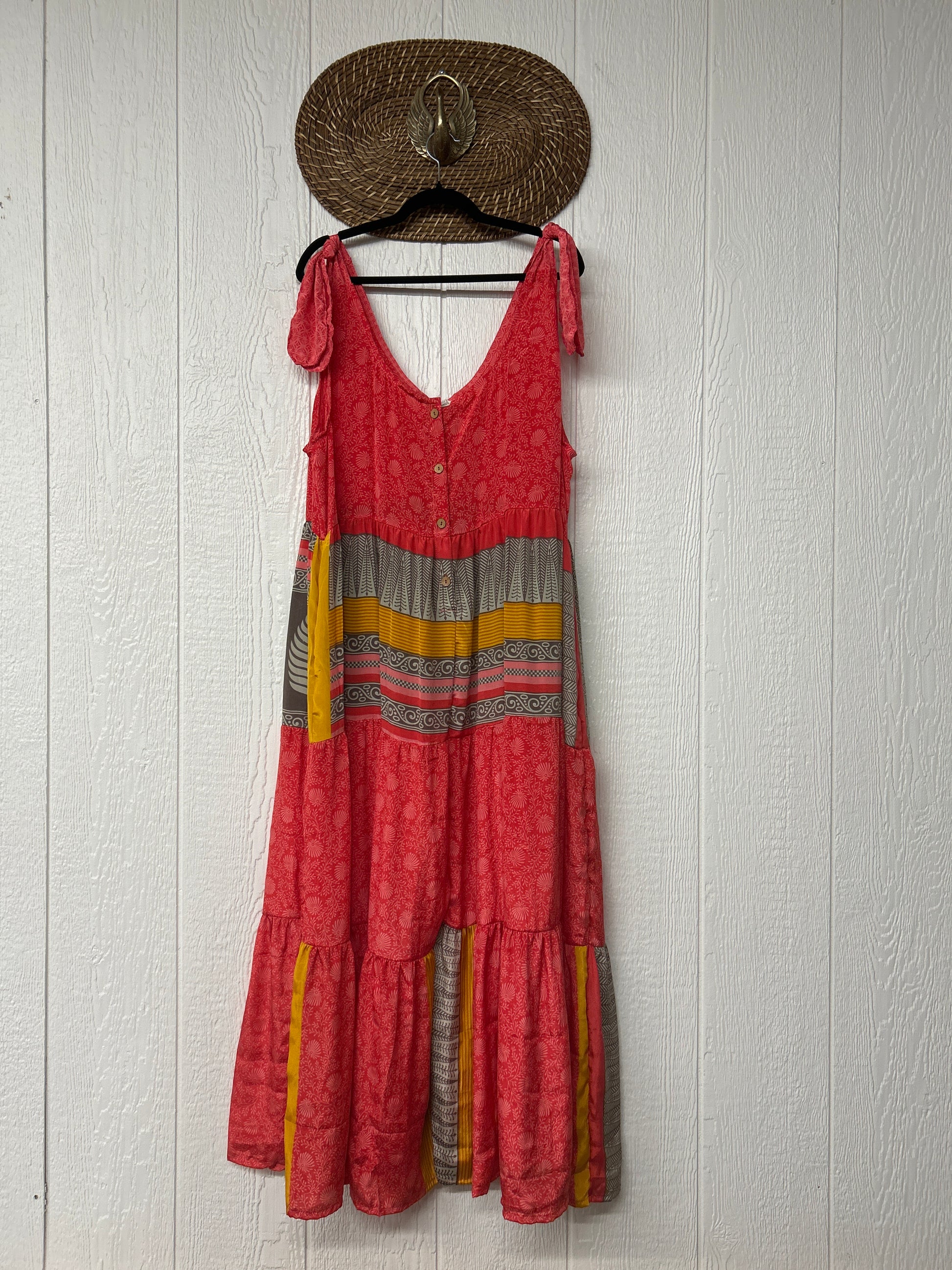 This femine and floaty tiered jumpsuit features tie straps for full customization and pockets.
