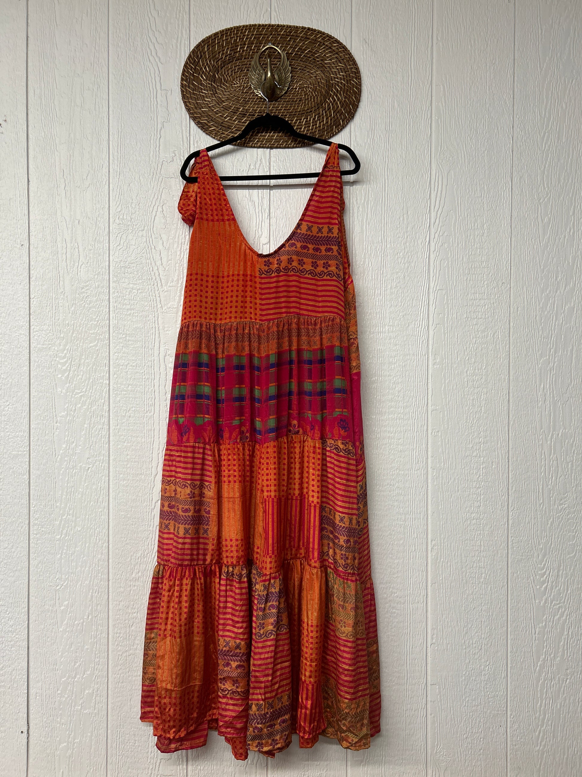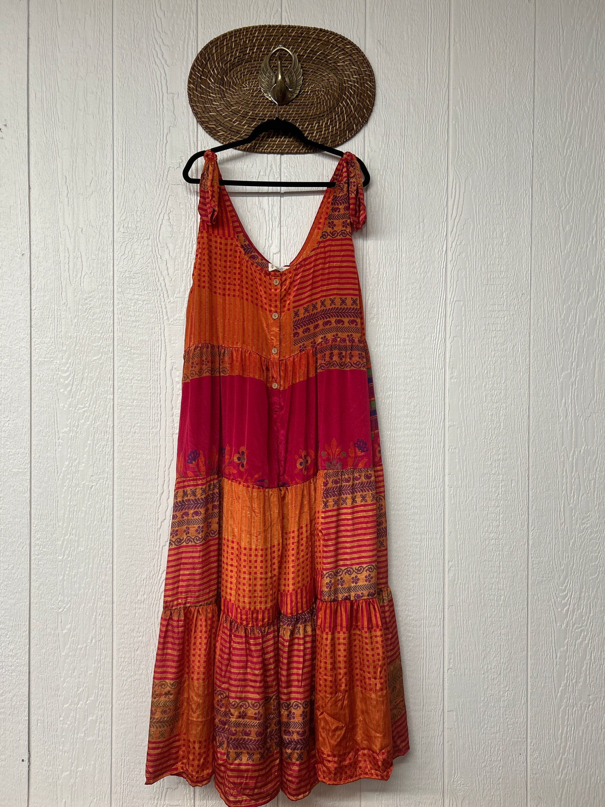 Our Celeste jumpsuit is made from our ultra luxe vintage rasgulla sari.