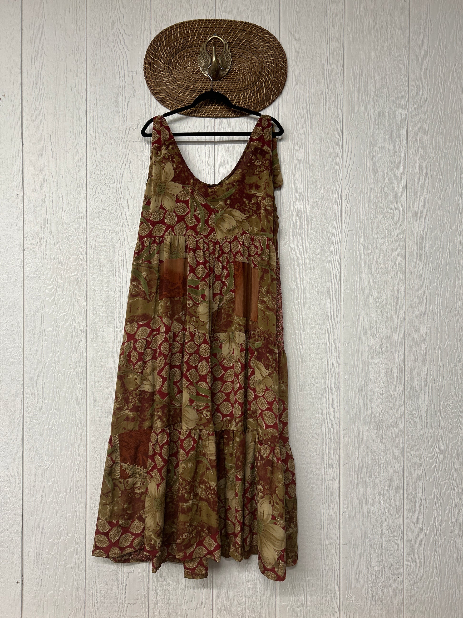 Our Celeste jumpsuit is made from our ultra luxe vintage rasgulla sari.
