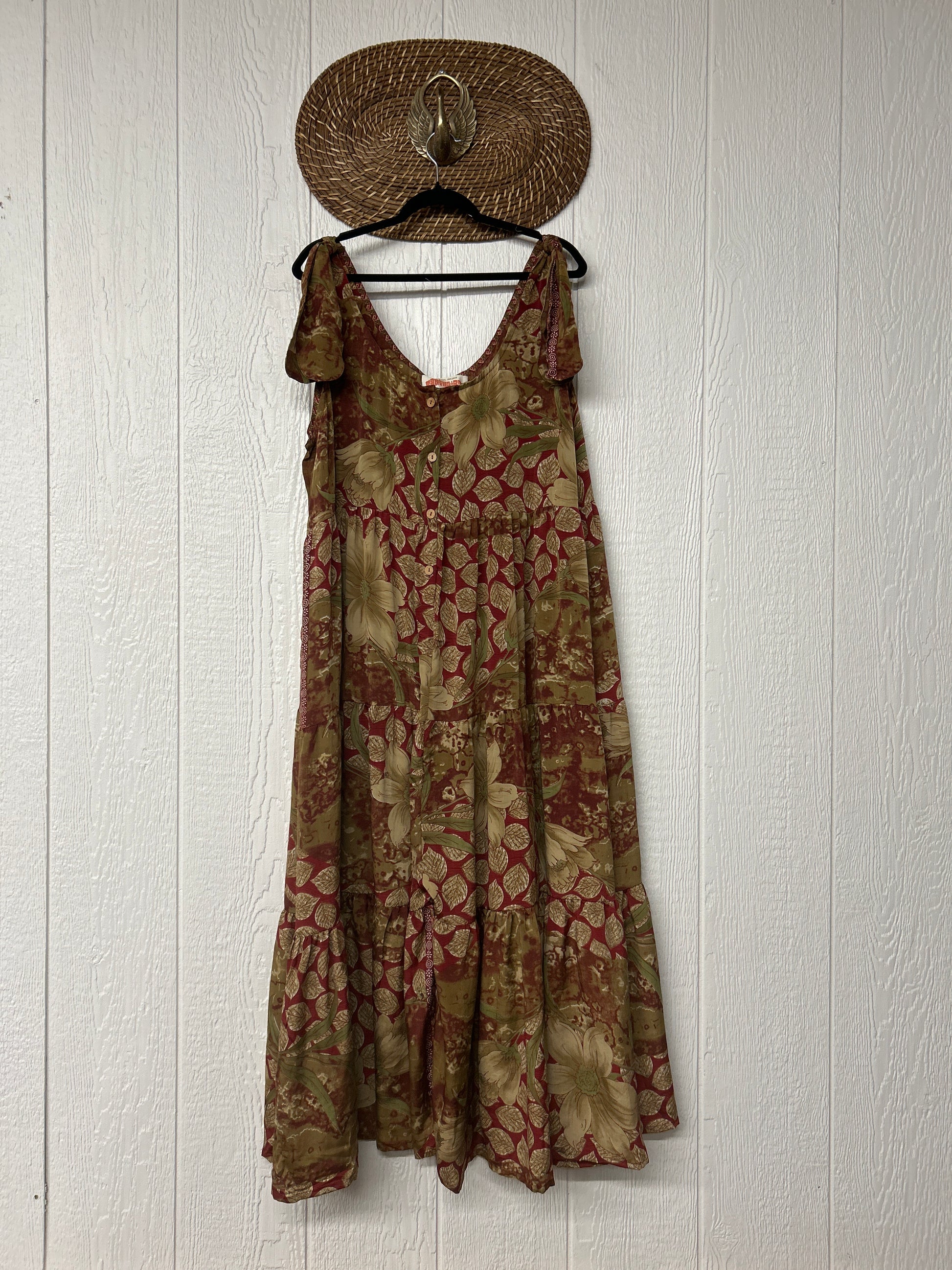 This femine and floaty tiered jumpsuit features tie straps for full customization and pockets.