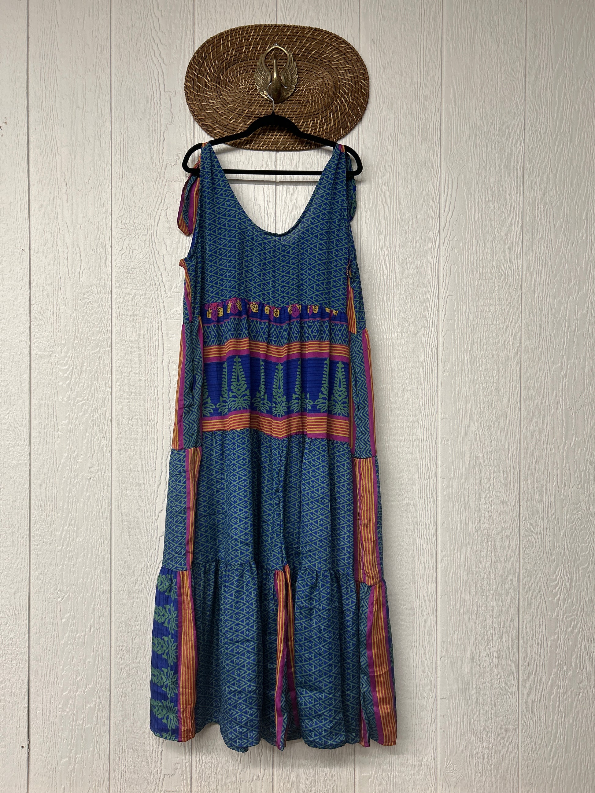 Our Celeste jumpsuit is made from our ultra luxe vintage rasgulla sari.