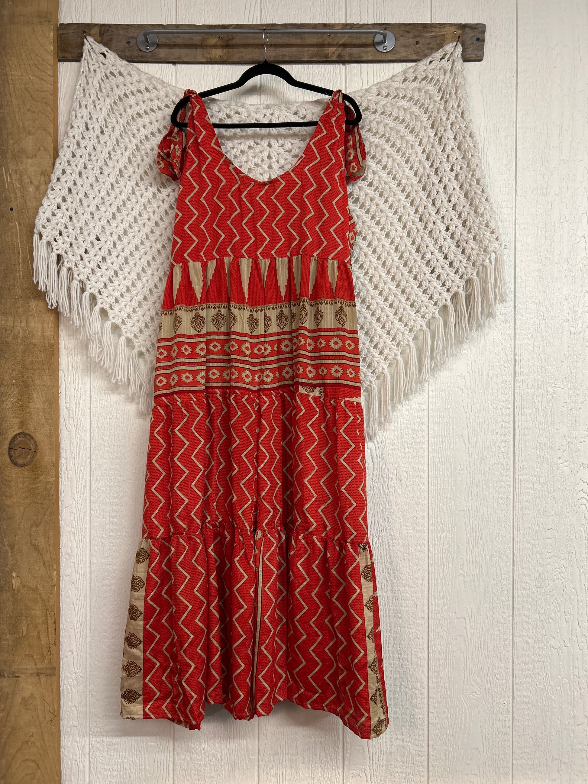 Our Celeste jumpsuit is made from our ultra luxe vintage rasgulla sari.