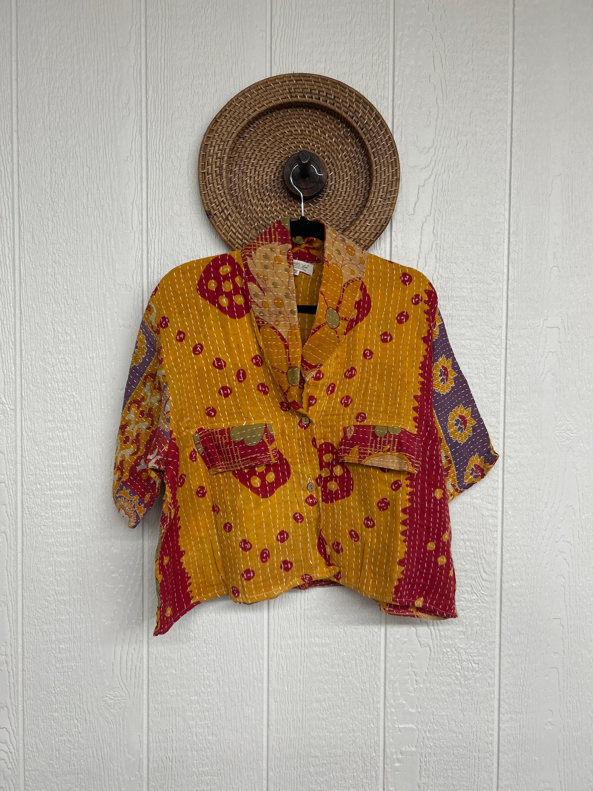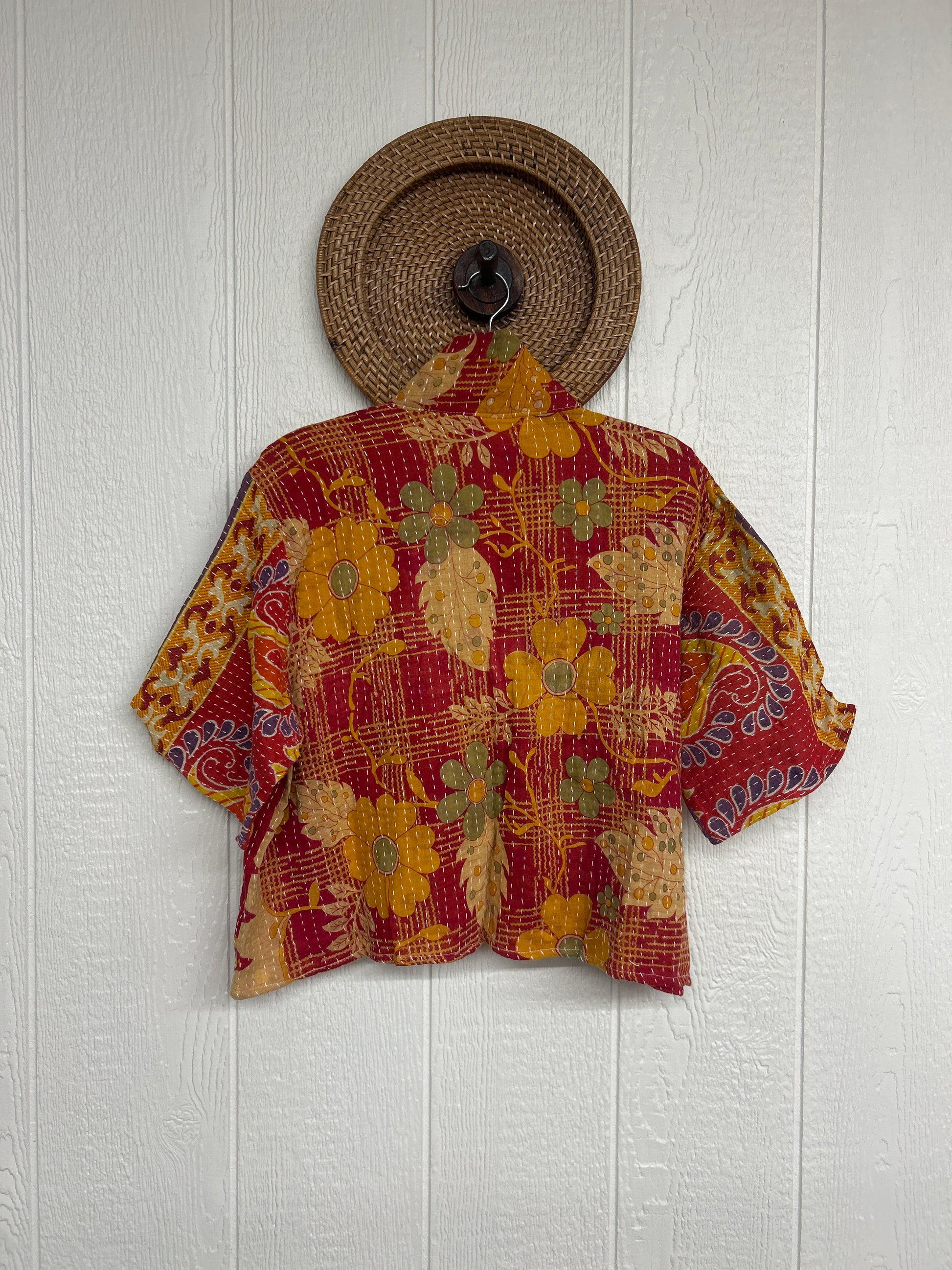 Disclosure: Our vintage styles have lived a full life before becoming the designs in our shop. Fabrics may have small threads or holes in the layers. Color inconsistency or small stains may be present. The saris are sewn together and extend the life of each design. Imperfections should be celebrated.