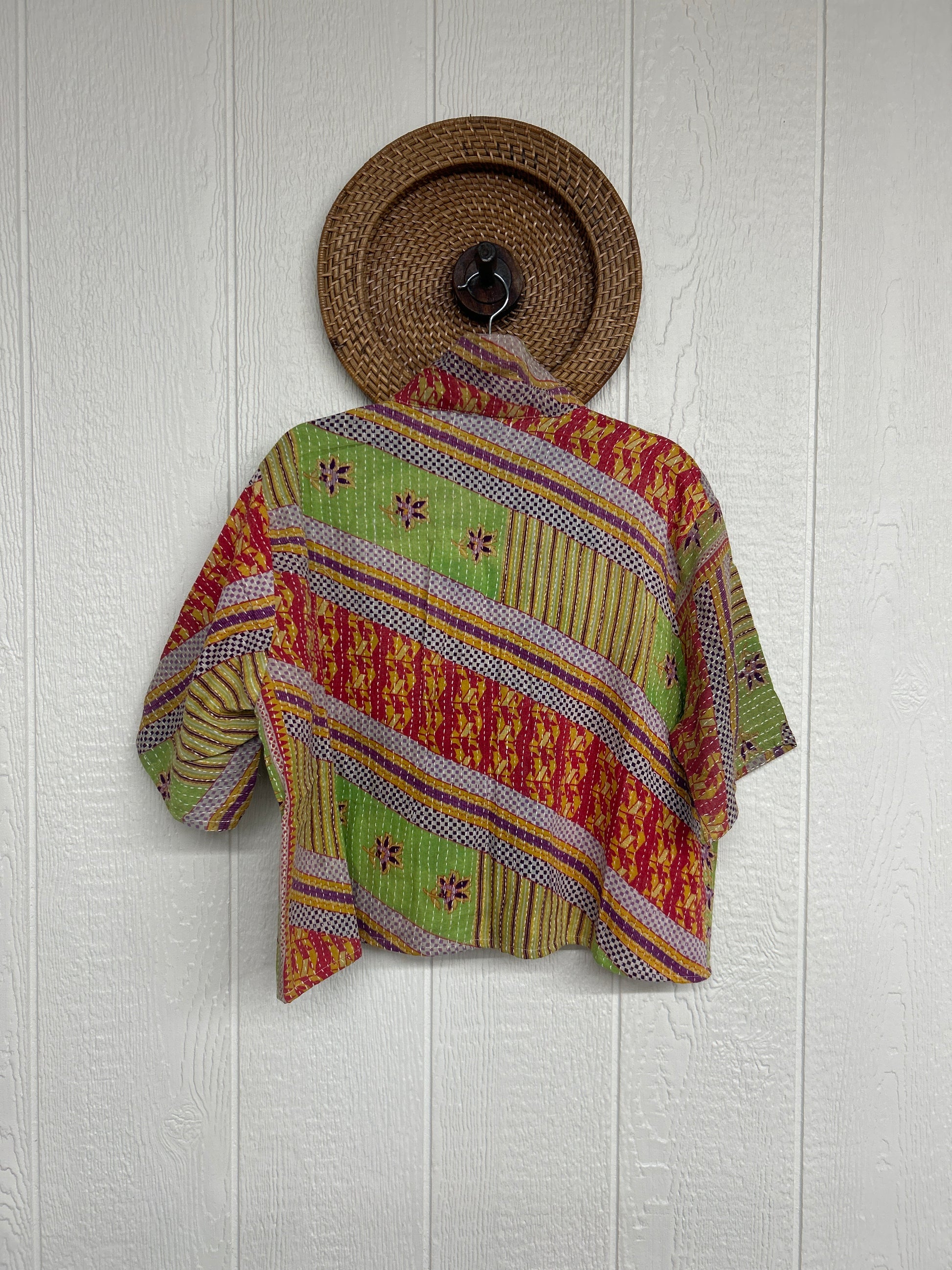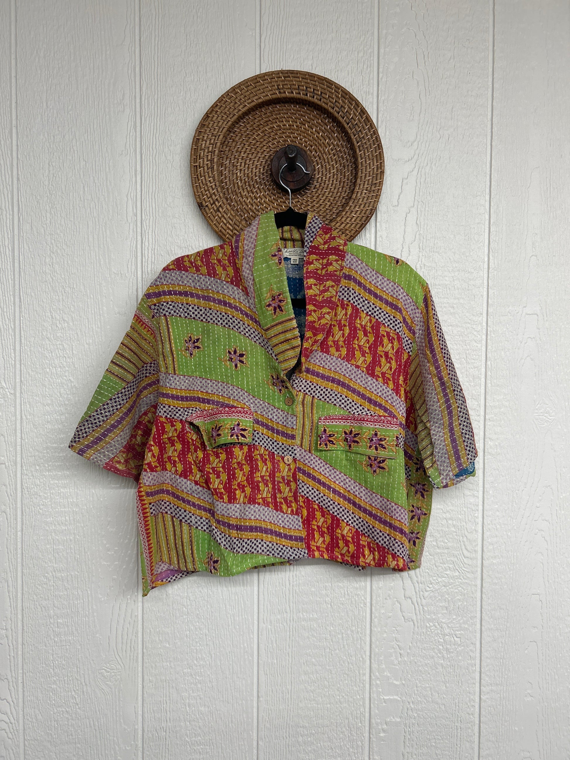 The Clarity Crop is the cropped camp shirt of your dreams! Crafted from our ultra lux kantha stitched vintage cotton sari the Clarity crop features interior pockets, a button down placket, collar and trendy cropped boxy silhouette.