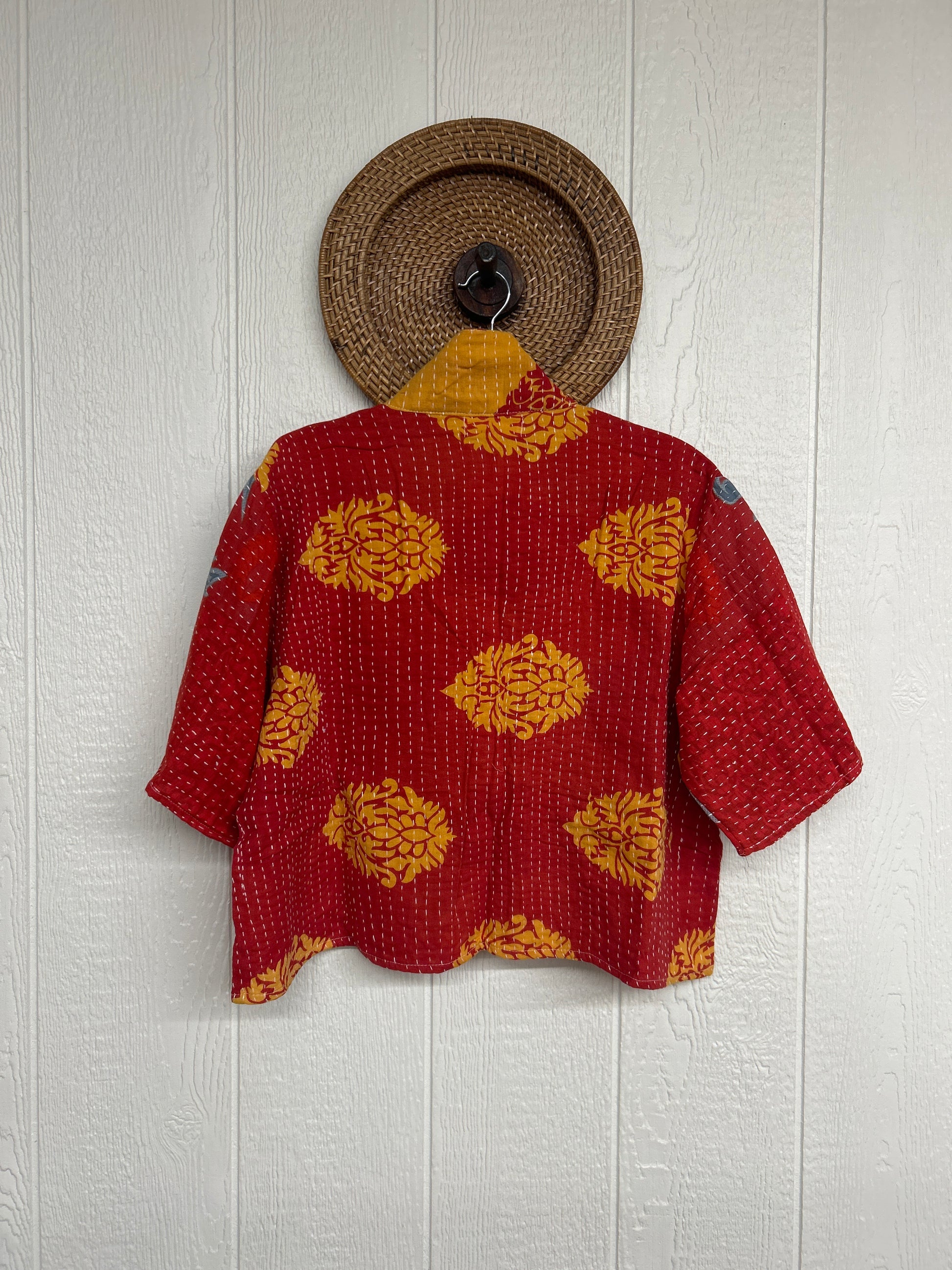 Disclosure: Our vintage styles have lived a full life before becoming the designs in our shop. Fabrics may have small threads or holes in the layers. Color inconsistency or small stains may be present. The saris are sewn together and extend the life of each design. Imperfections should be celebrated.