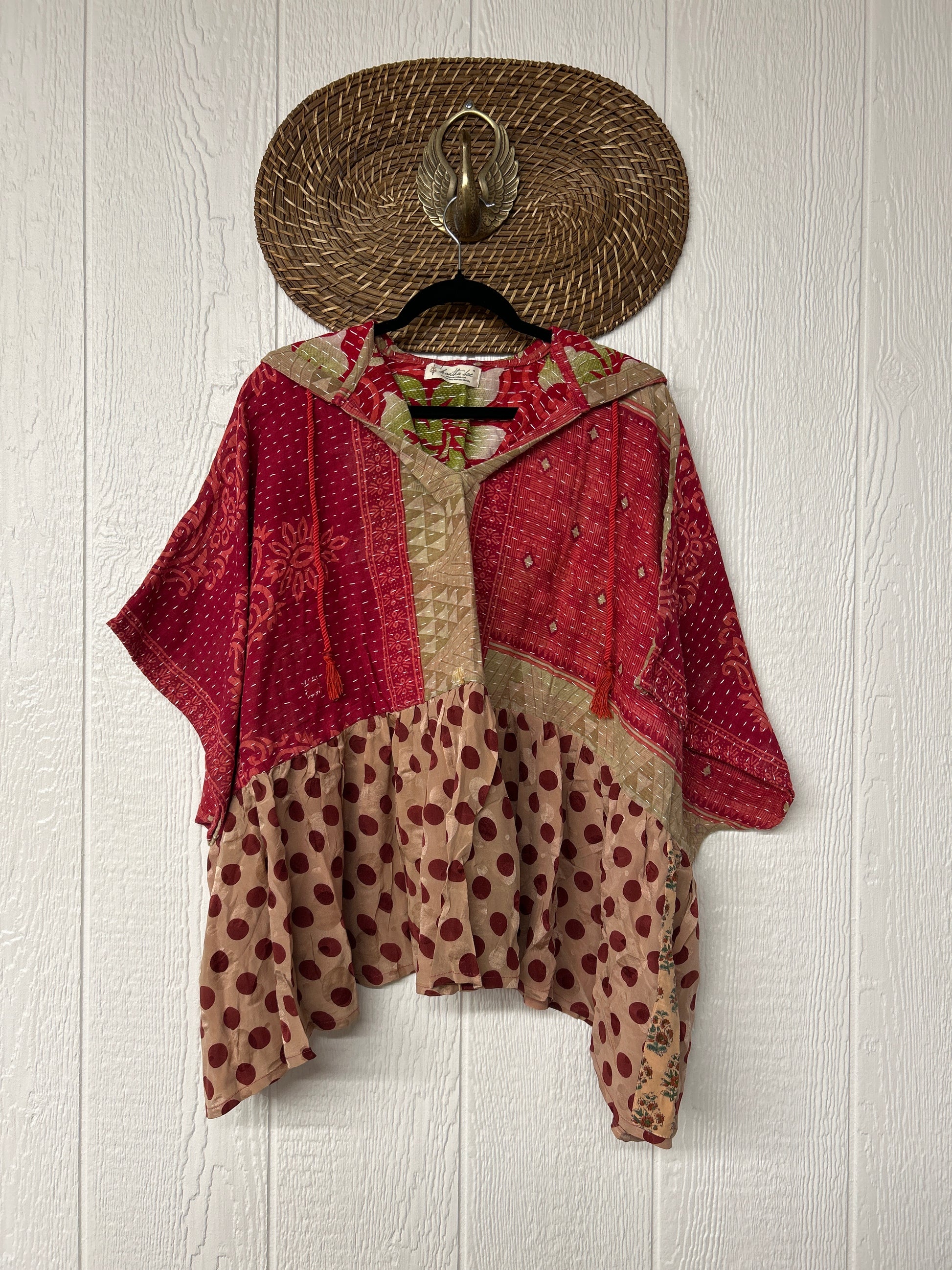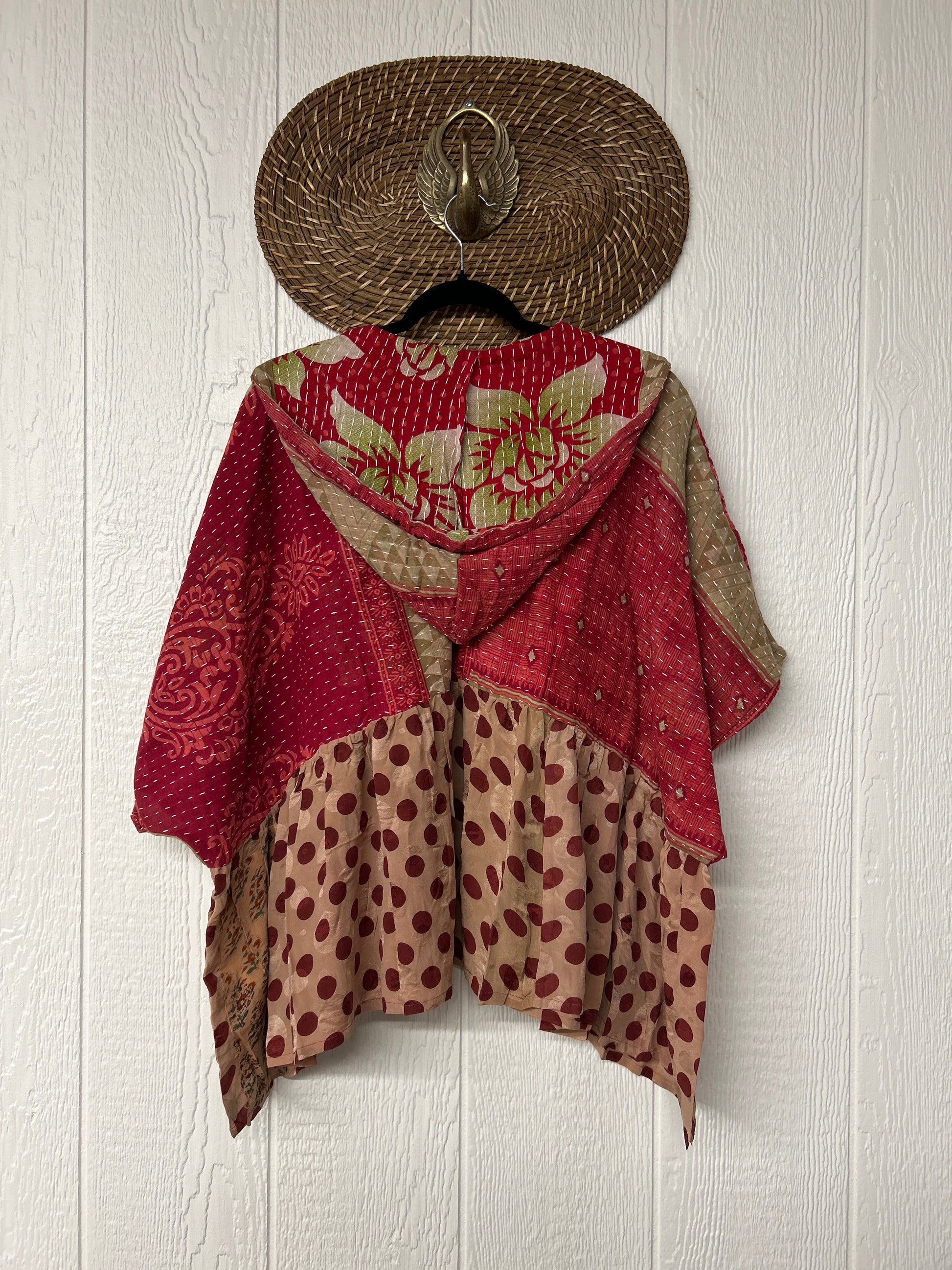 Your favorite throw on and go piece is made out of our vintage kantha embroidered sari with a crepe sari flounce. This poncho like silhouette is a flowy floaty dream.