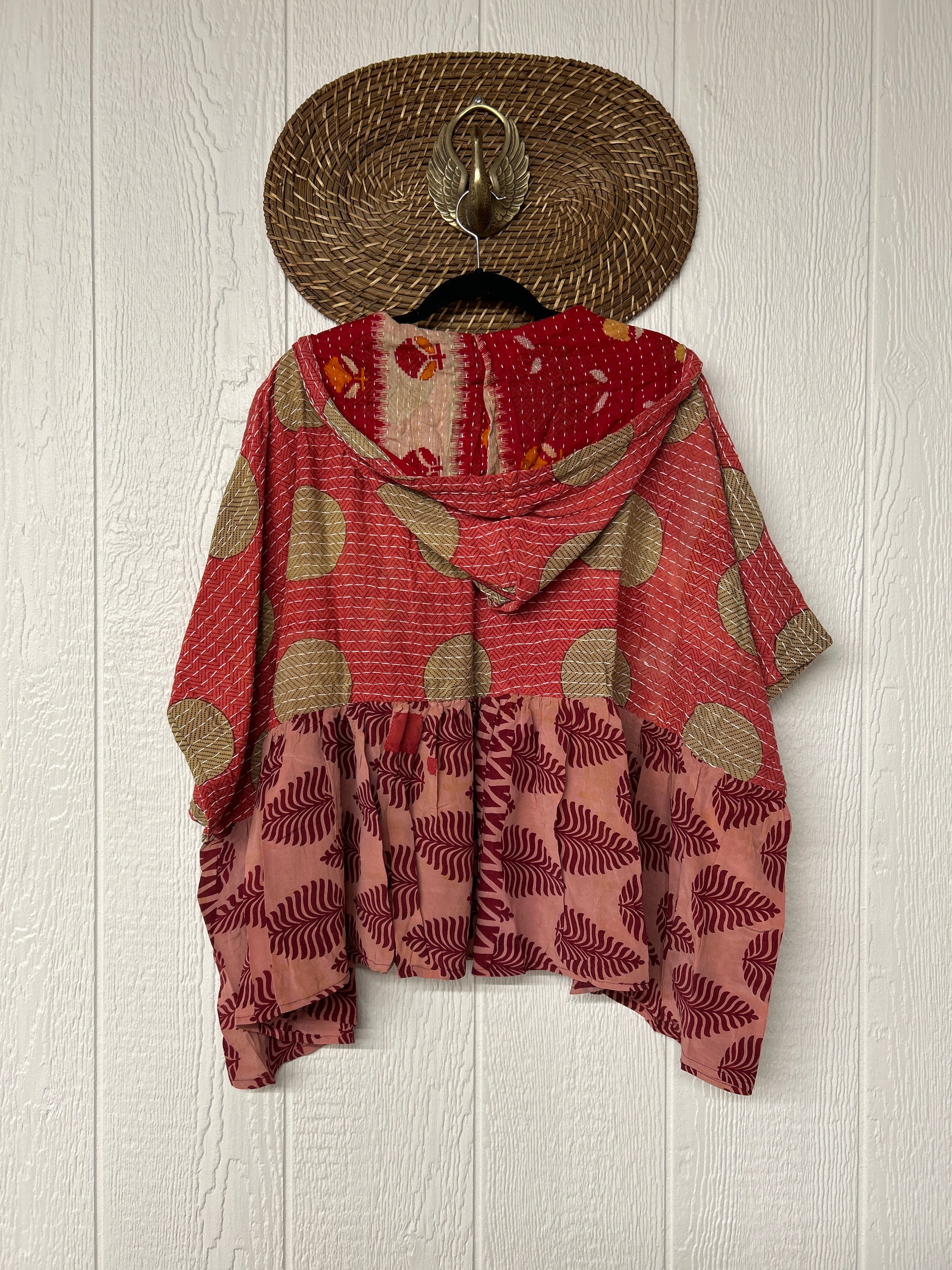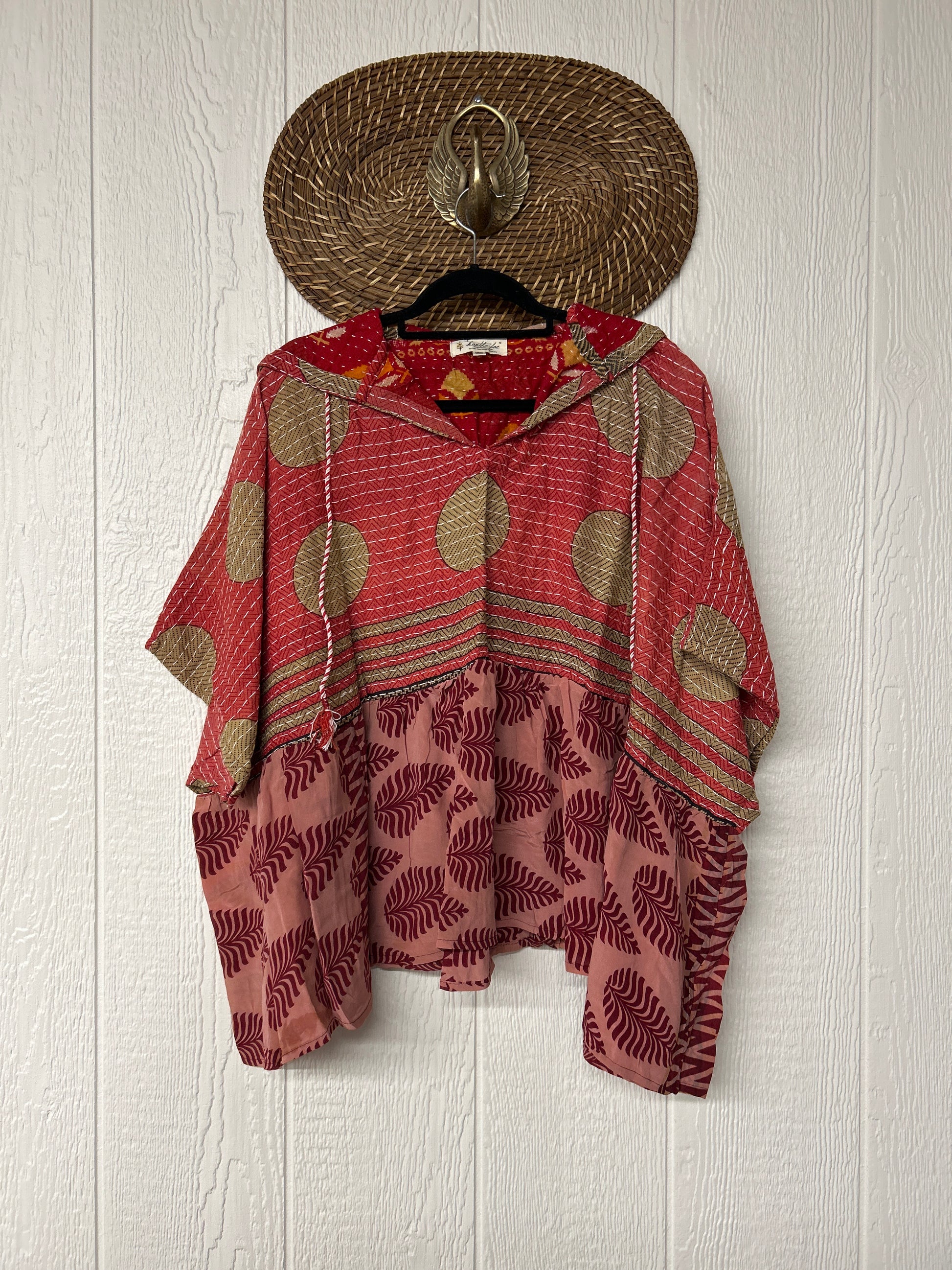 Your favorite throw on and go piece is made out of our vintage kantha embroidered sari with a crepe sari flounce. This poncho like silhouette is a flowy floaty dream.