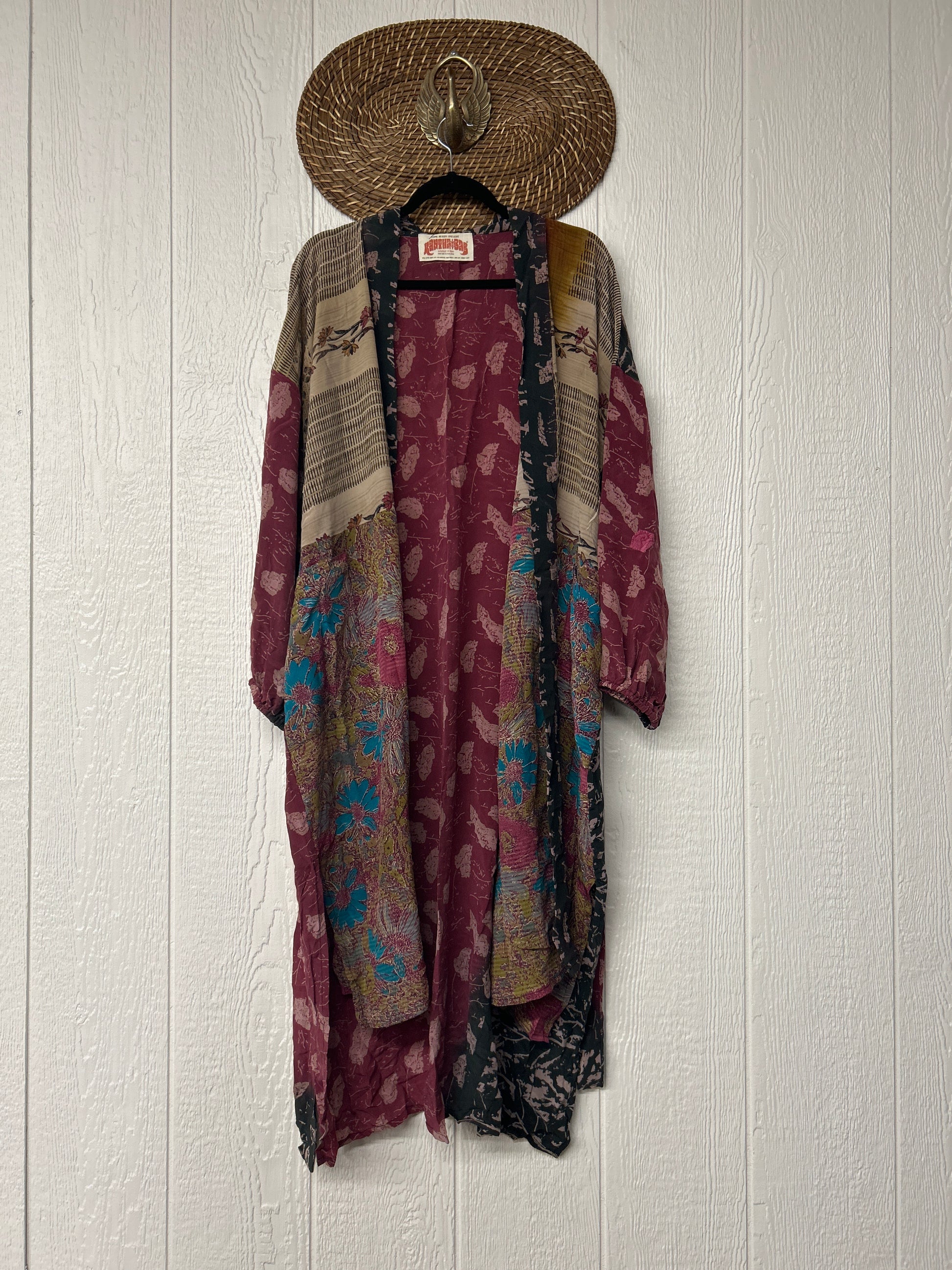 Crepe Dusters are beautiful, flowy, midi-length kimonos made from our ultra lux vintage crepe sari. They feature balloon sleeves with elastic at the wrist, 2 slouchy pockets, and a sash. They are one of our favorite layering pieces EVER.