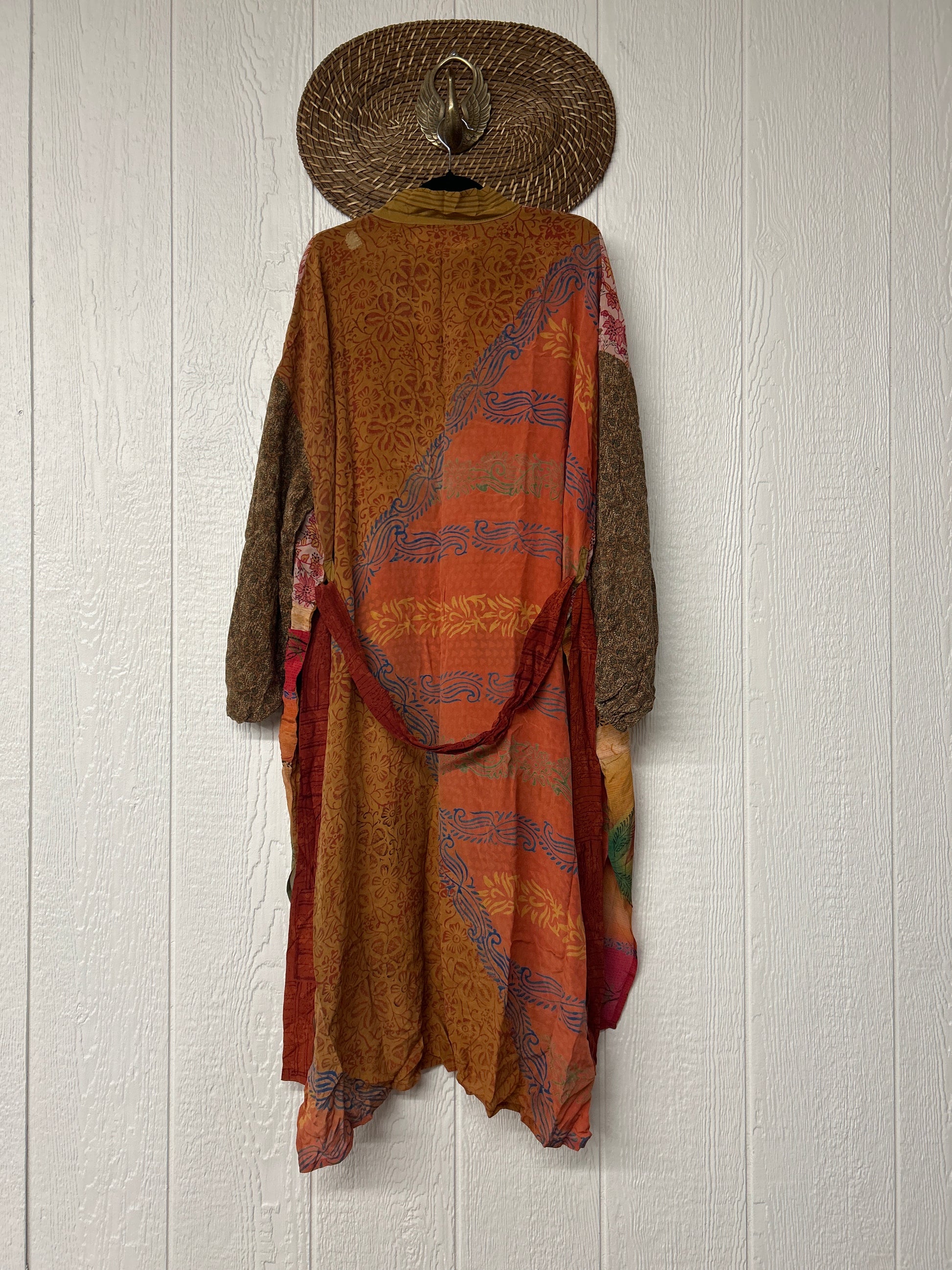 Crepe Dusters are beautiful, flowy, midi-length kimonos made from our ultra lux vintage crepe sari. They feature balloon sleeves with elastic at the wrist, 2 slouchy pockets, and a sash. They are one of our favorite layering pieces EVER.