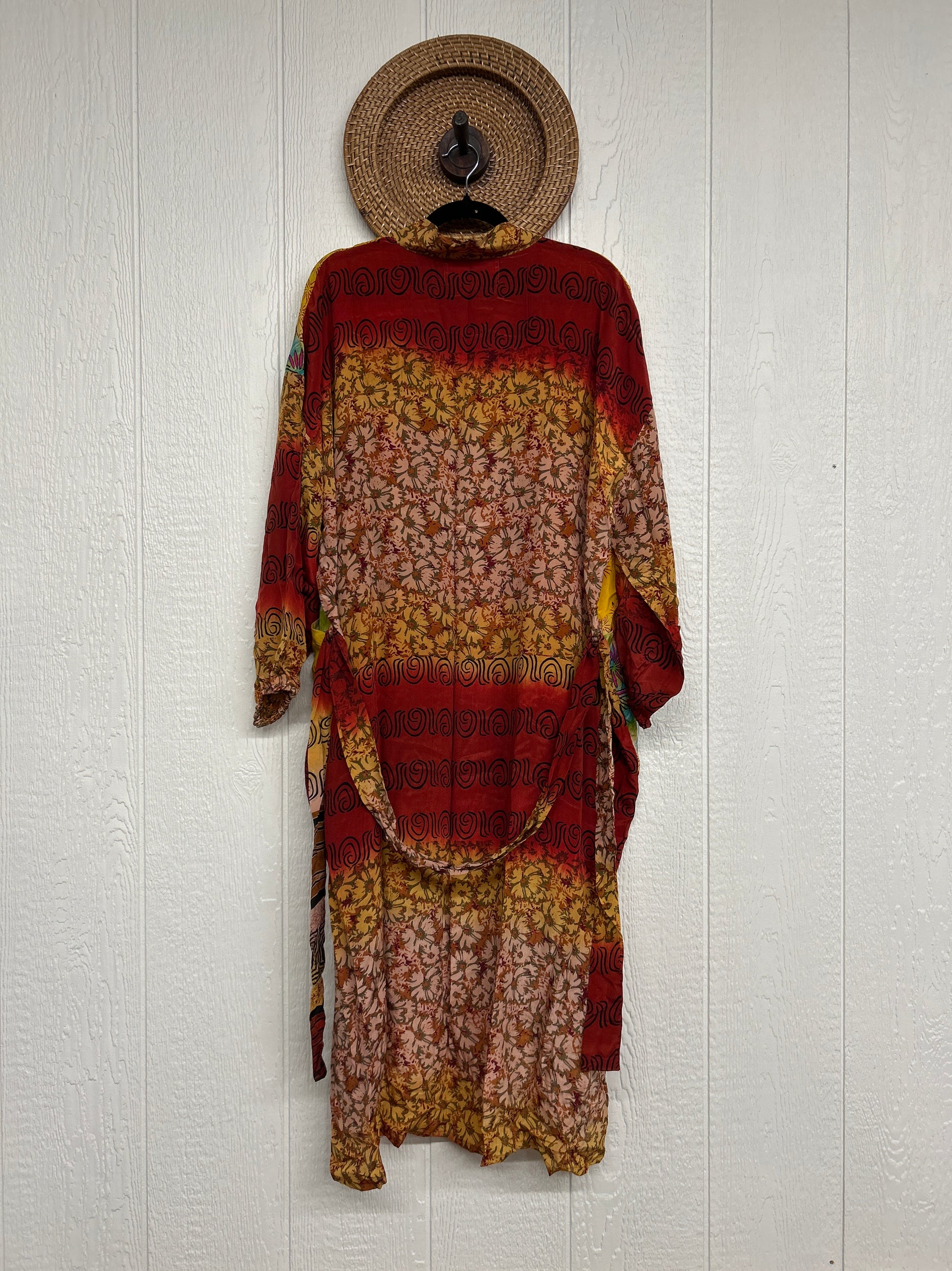 Crepe Dusters are beautiful, flowy, midi-length kimonos made from our ultra lux vintage crepe sari. They feature balloon sleeves with elastic at the wrist, 2 slouchy pockets, and a sash. They are one of our favorite layering pieces EVER.