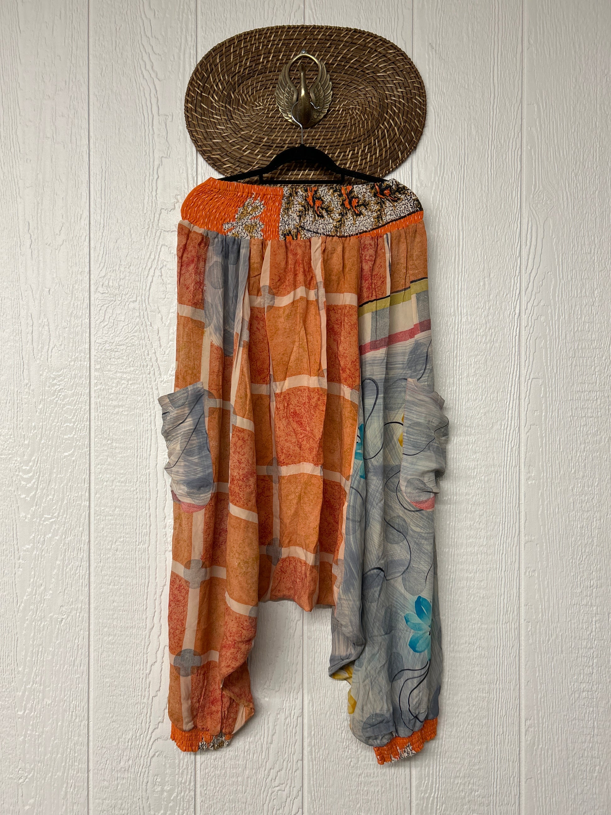 Made from vintage crepe sari, these are perfectly slouchy with a low harem drop for that effortless, flowy feel. Featuring deep side pockets, kantha stretch at the ankles, and a kantha smocked waistband that feels smooth and soft on the skin.
