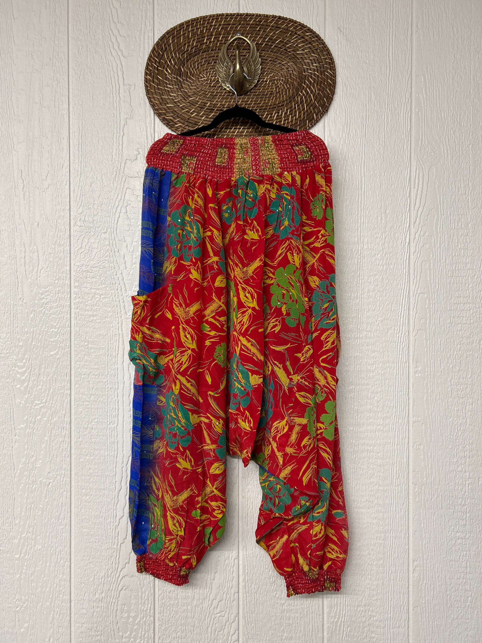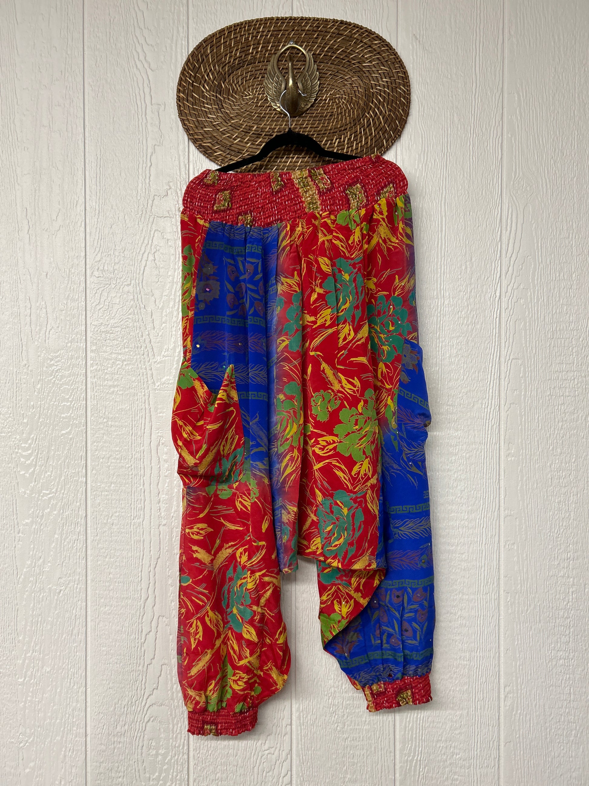 Made from vintage crepe sari, these are perfectly slouchy with a low harem drop for that effortless, flowy feel. Featuring deep side pockets, kantha stretch at the ankles, and a kantha smocked waistband that feels smooth and soft on the skin.