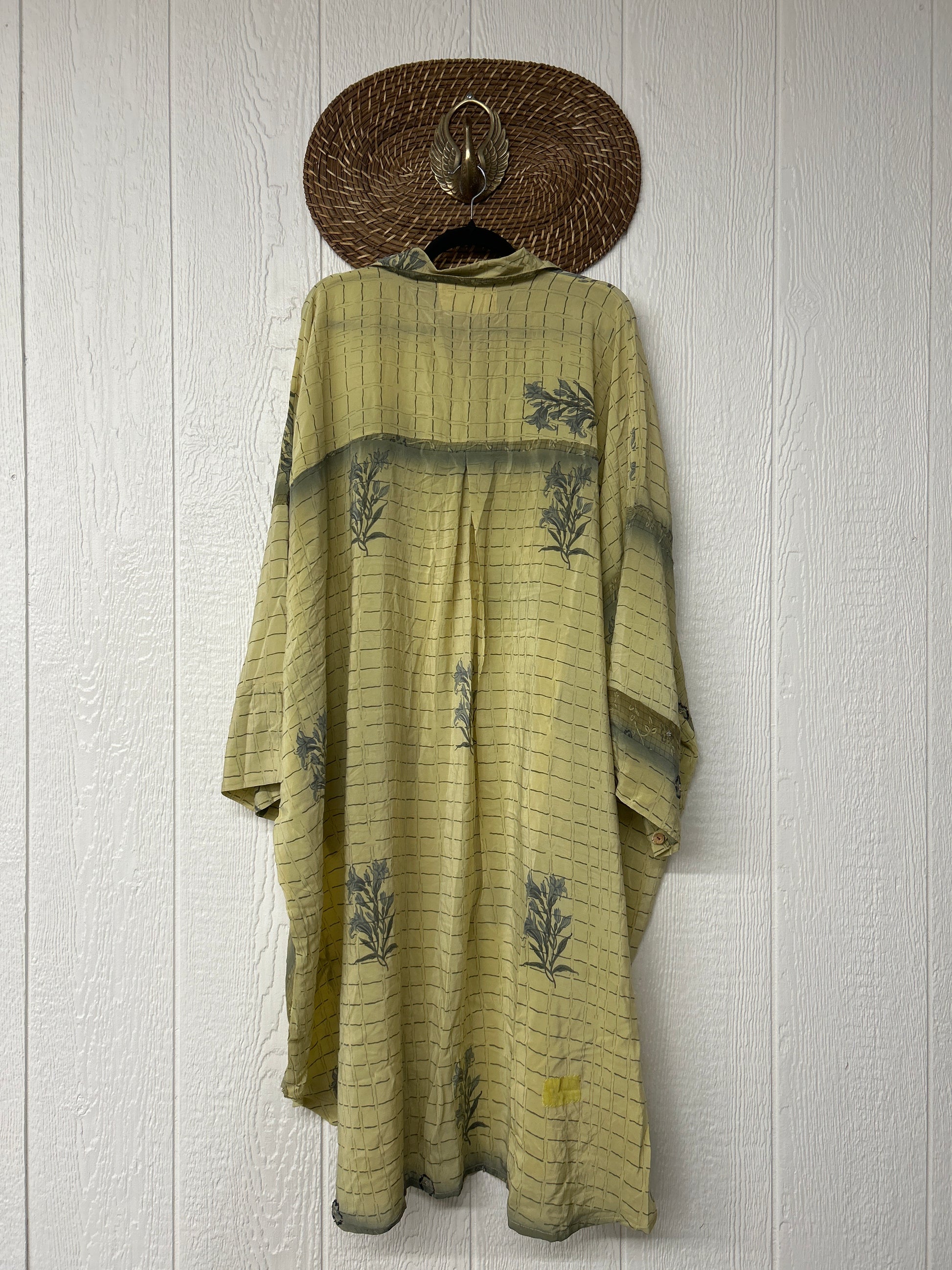 Made from our vintage crepe sari, this billowy dream functional buttons, two deep pockets in the front, dreamy longsleeves and a curved bottom.