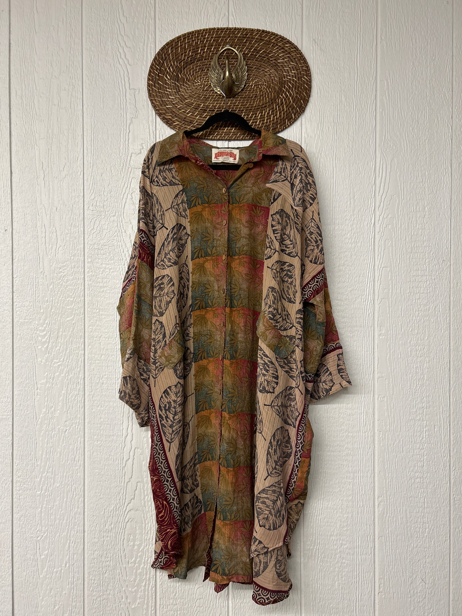 Made from our vintage crepe sari, this billowy dream functional buttons, two deep pockets in the front, dreamy longsleeves and a curved bottom.