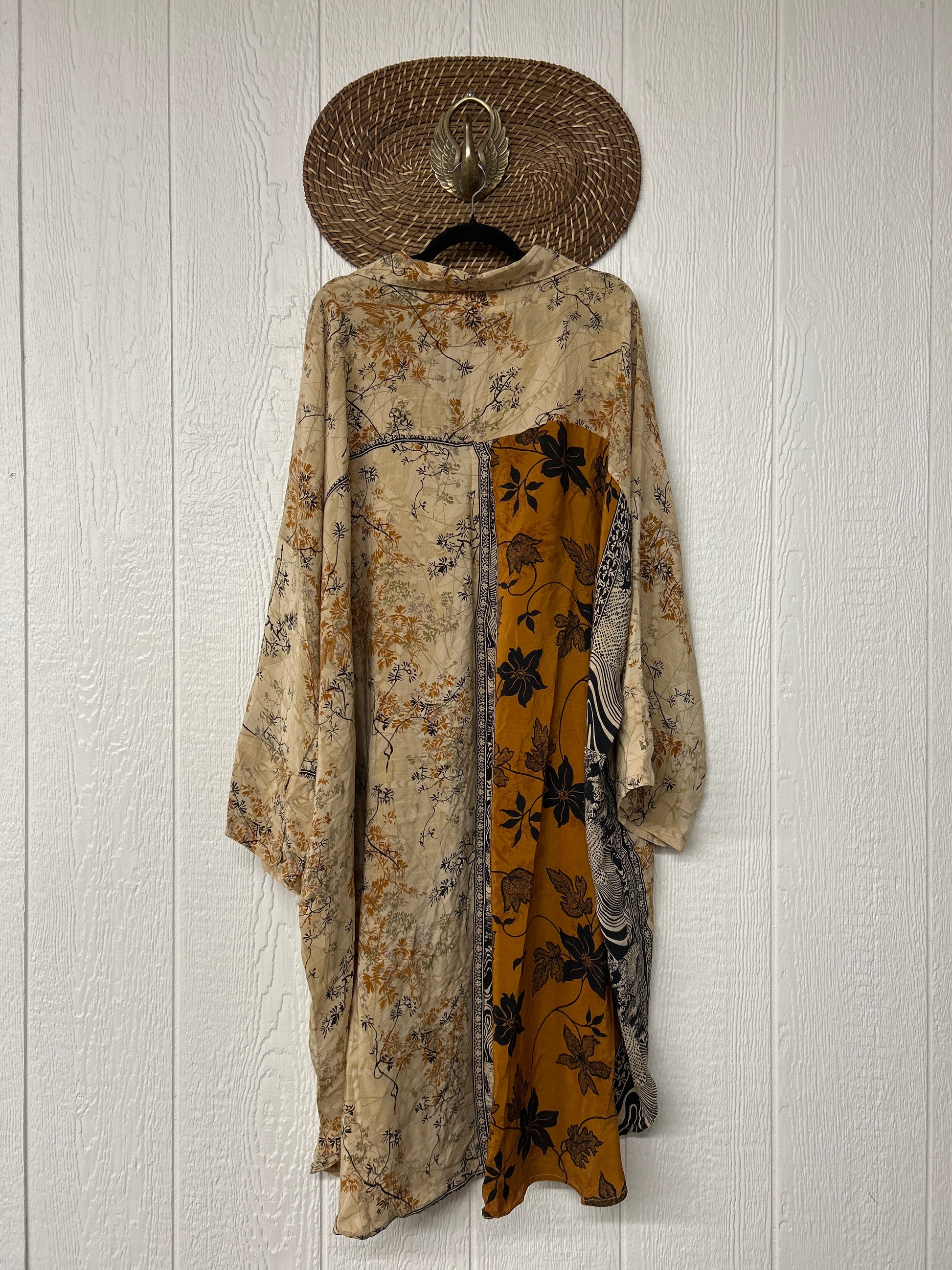 Made from our vintage crepe sari, this billowy dream functional buttons, two deep pockets in the front, dreamy longsleeves and a curved bottom.
