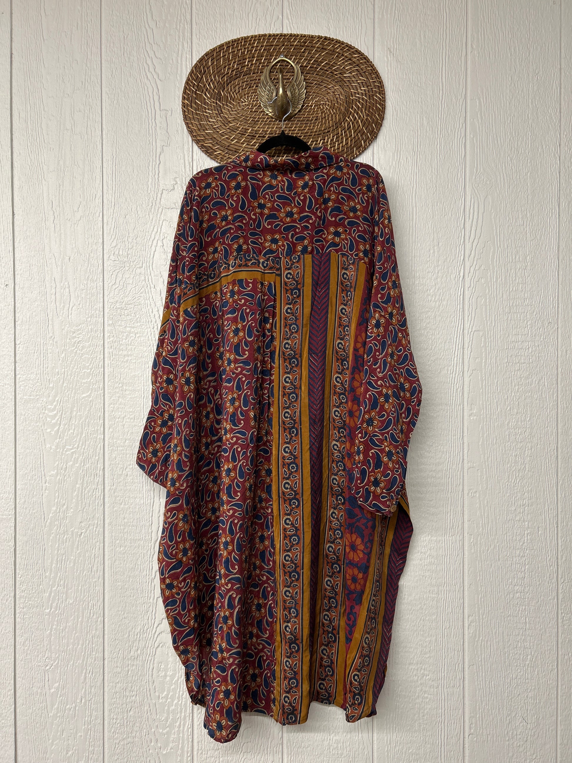 Made from our vintage crepe sari, this billowy dream functional buttons, two deep pockets in the front, dreamy longsleeves and a curved bottom.