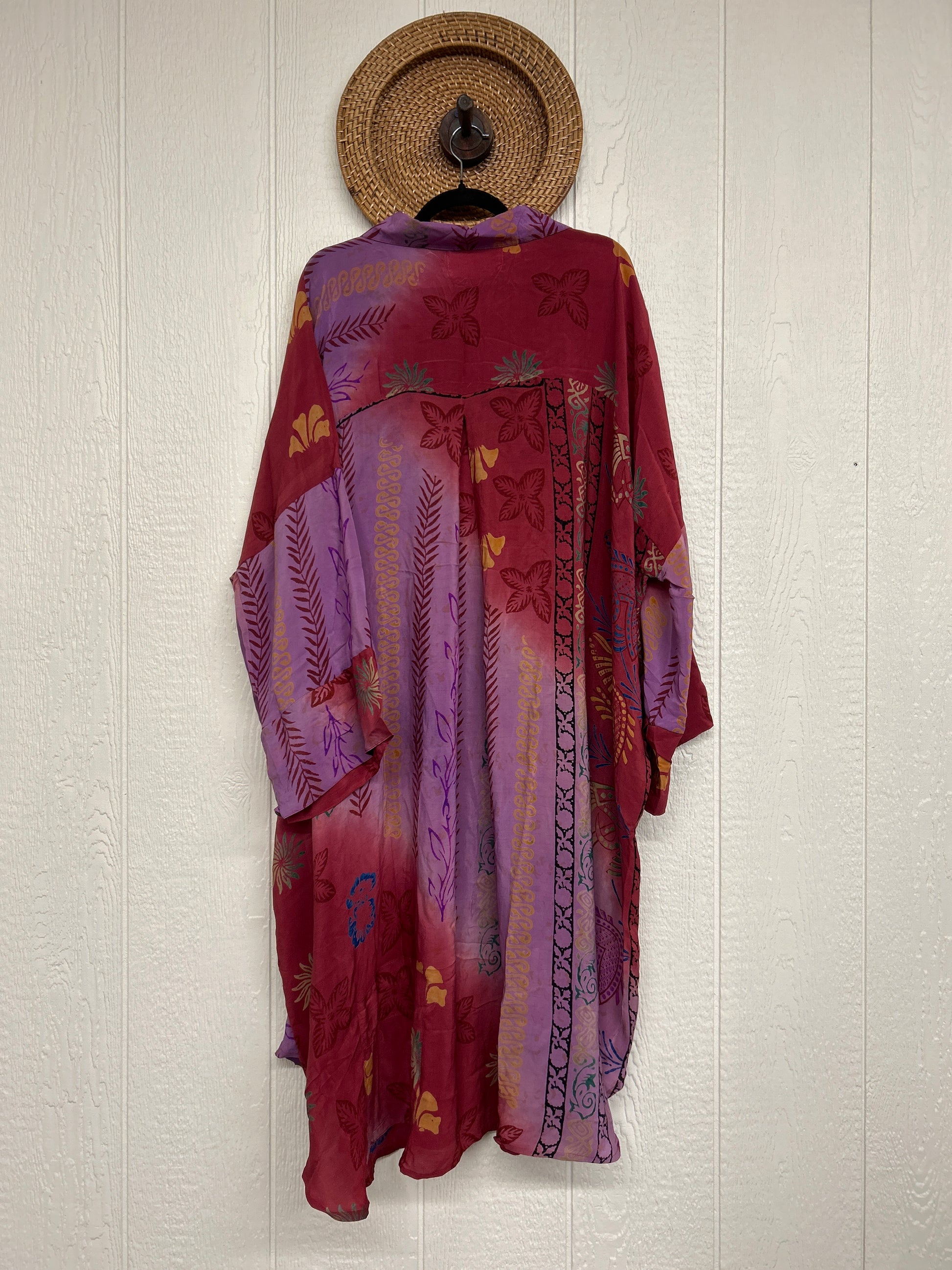 Made from our vintage crepe sari, this billowy dream functional buttons, two deep pockets in the front, dreamy longsleeves and a curved bottom.