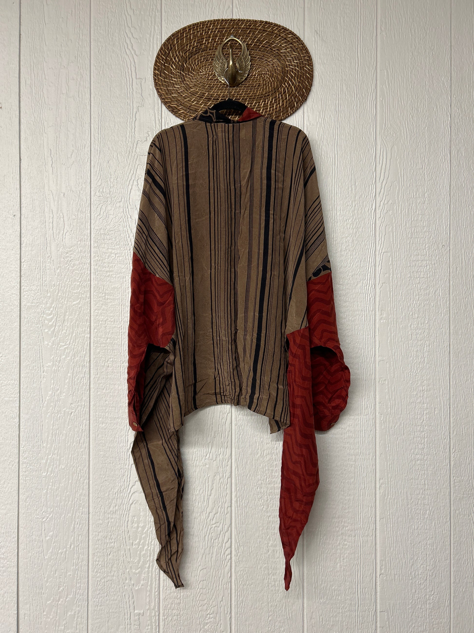 Crafted from our ultra lux vintage crepe sari this floaty dream features a Button-down placket with a high low hem, collar, and button cuffs.