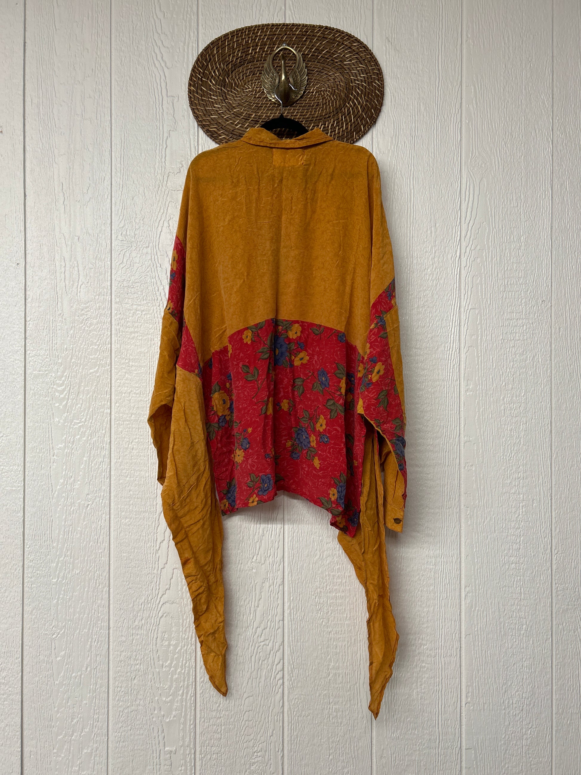 Crafted from our ultra lux vintage crepe sari this floaty dream features a Button-down placket with a high low hem, collar, and button cuffs.