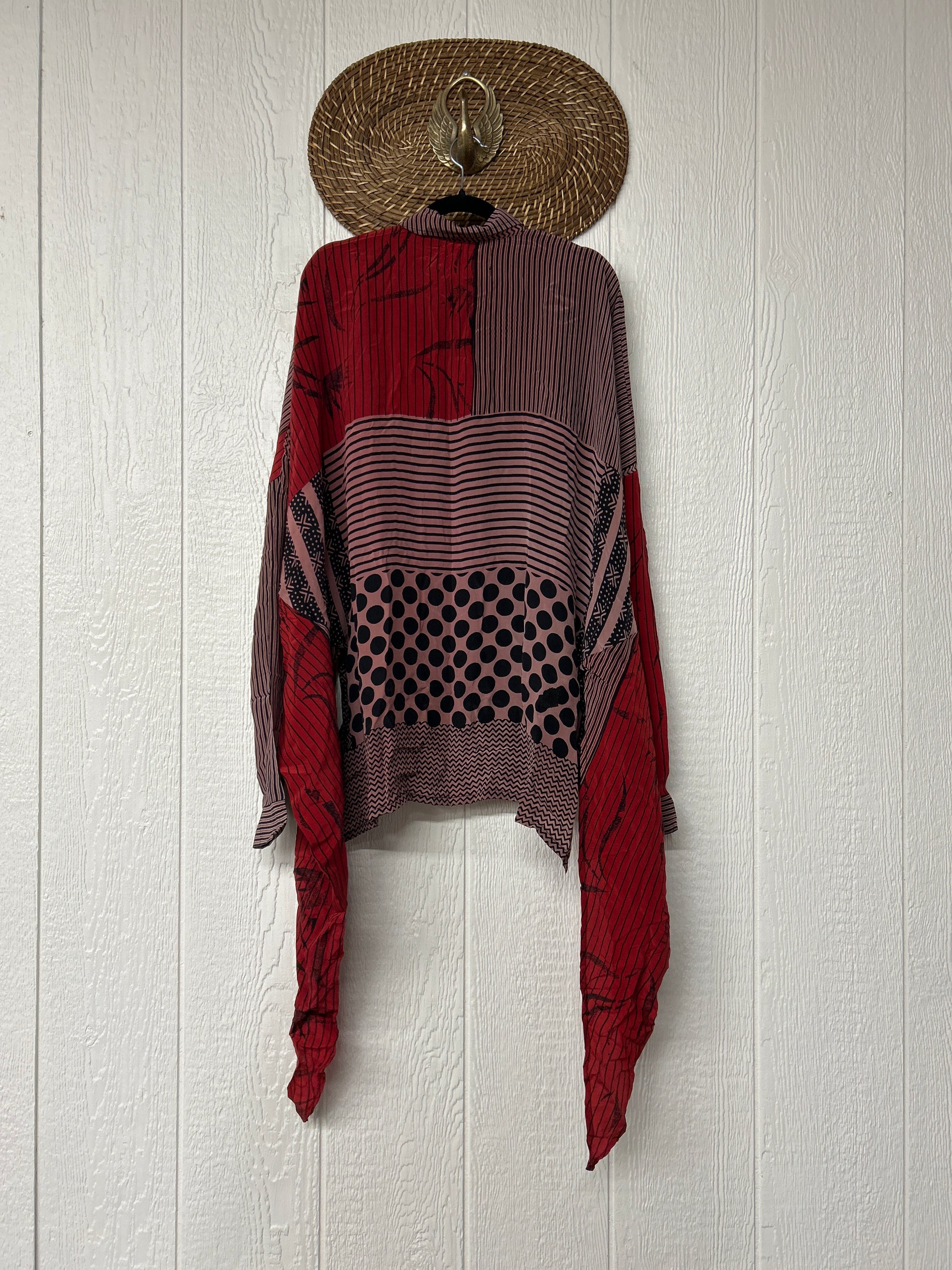 Crafted from our ultra lux vintage crepe sari this floaty dream features a Button-down placket with a high low hem, collar, and button cuffs.