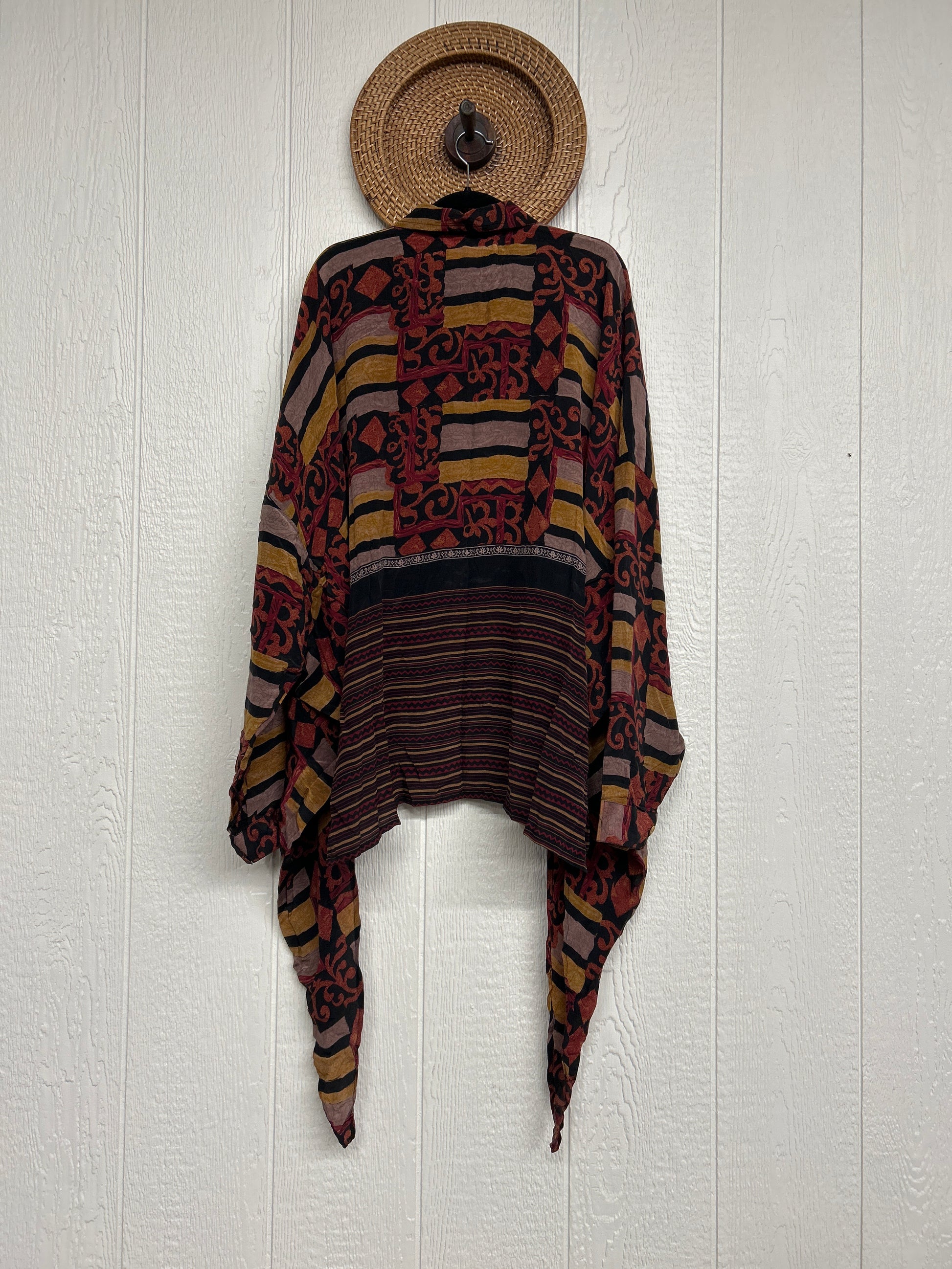 Crafted from our ultra lux vintage crepe sari this floaty dream features a Button-down placket with a high low hem, collar, and button cuffs.