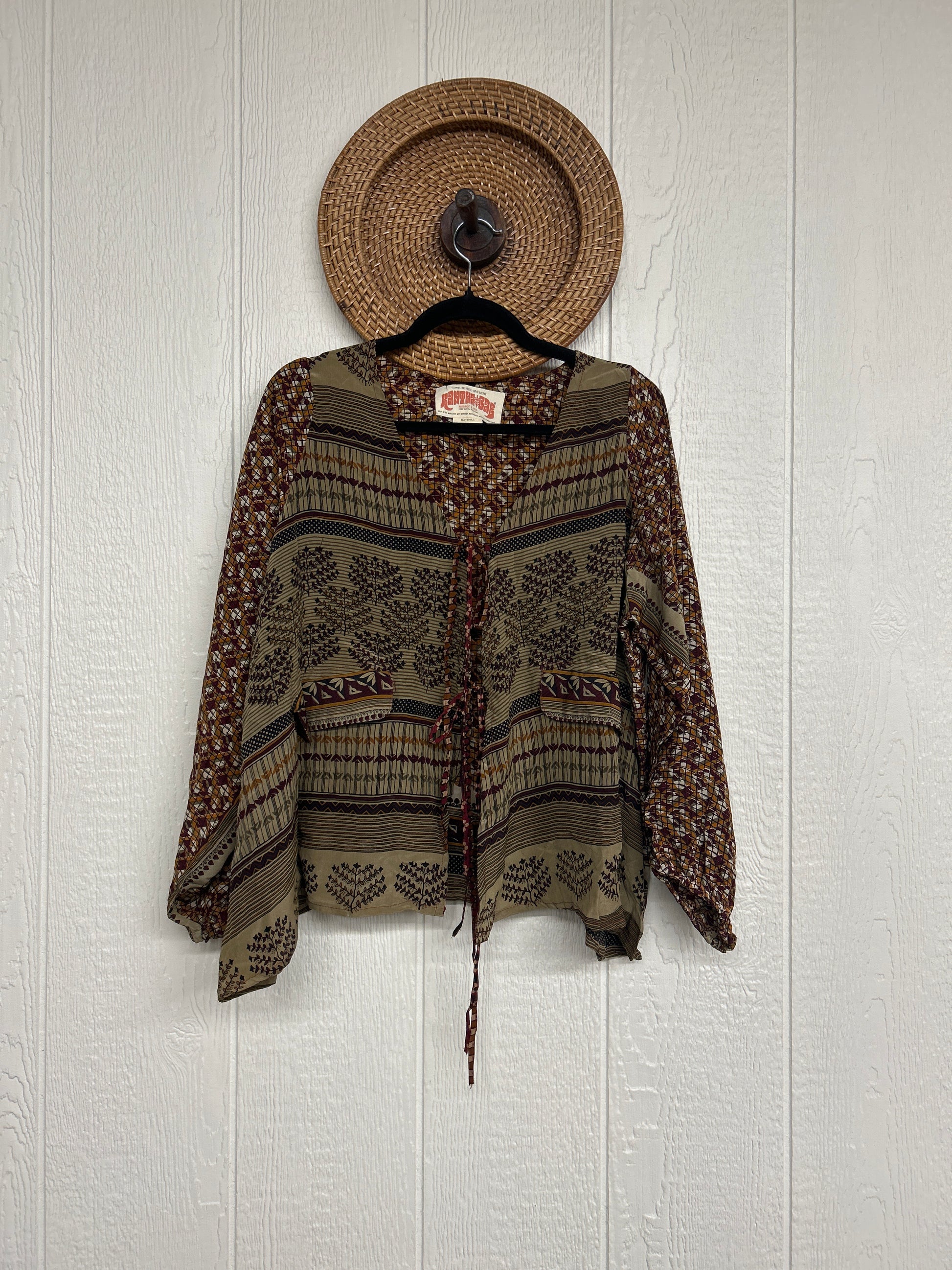 Disclosure: Our vintage styles have lived a full life before becoming the designs in our shop. Fabrics may have small threads or holes in the layers. Color inconsistency or small stains may be present. The saris are sewn together and extend the life of each design.
