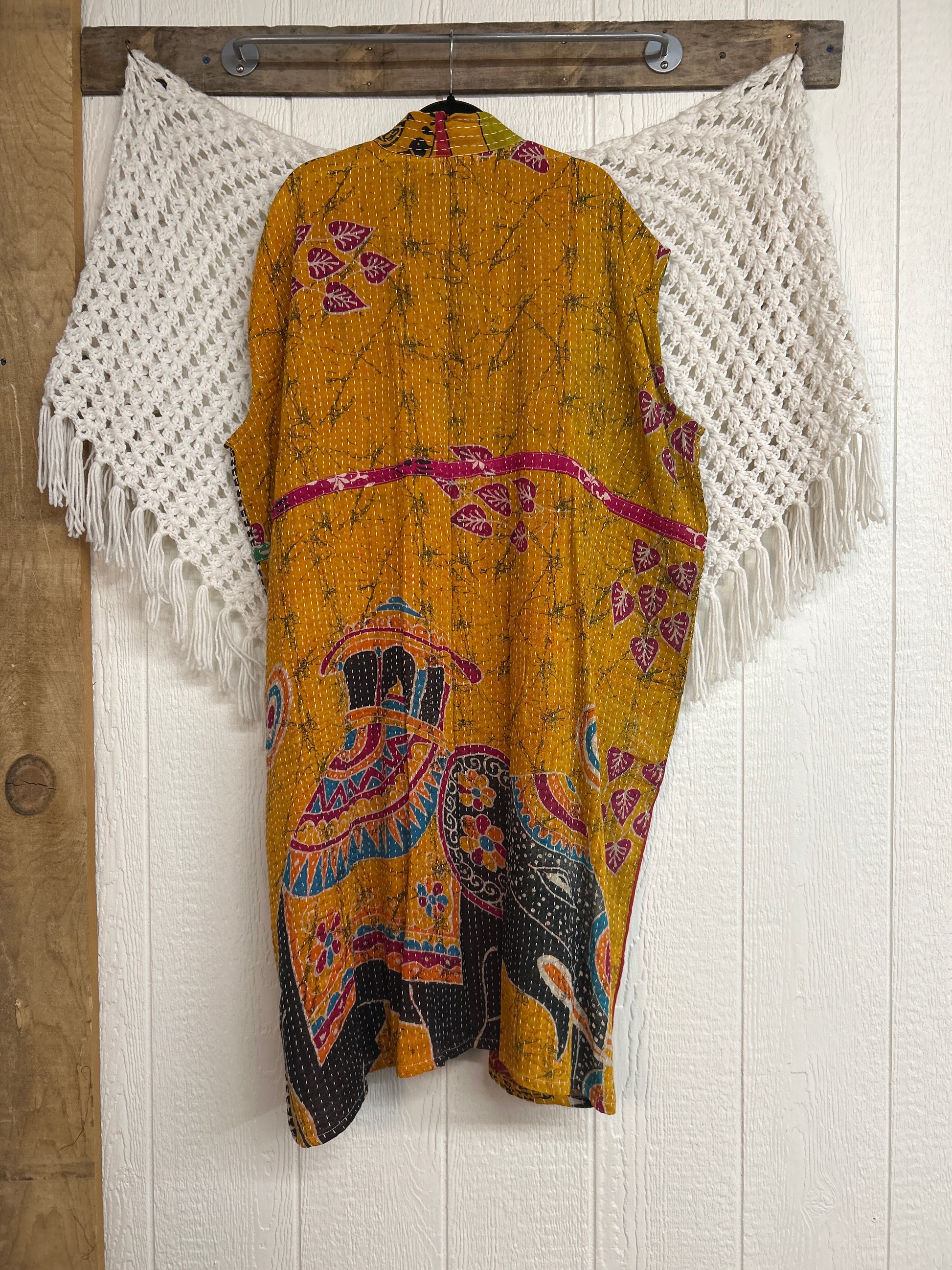 This groovy statement piece is crafted from our ultra lux kantha stitch vintage cotton sari.
