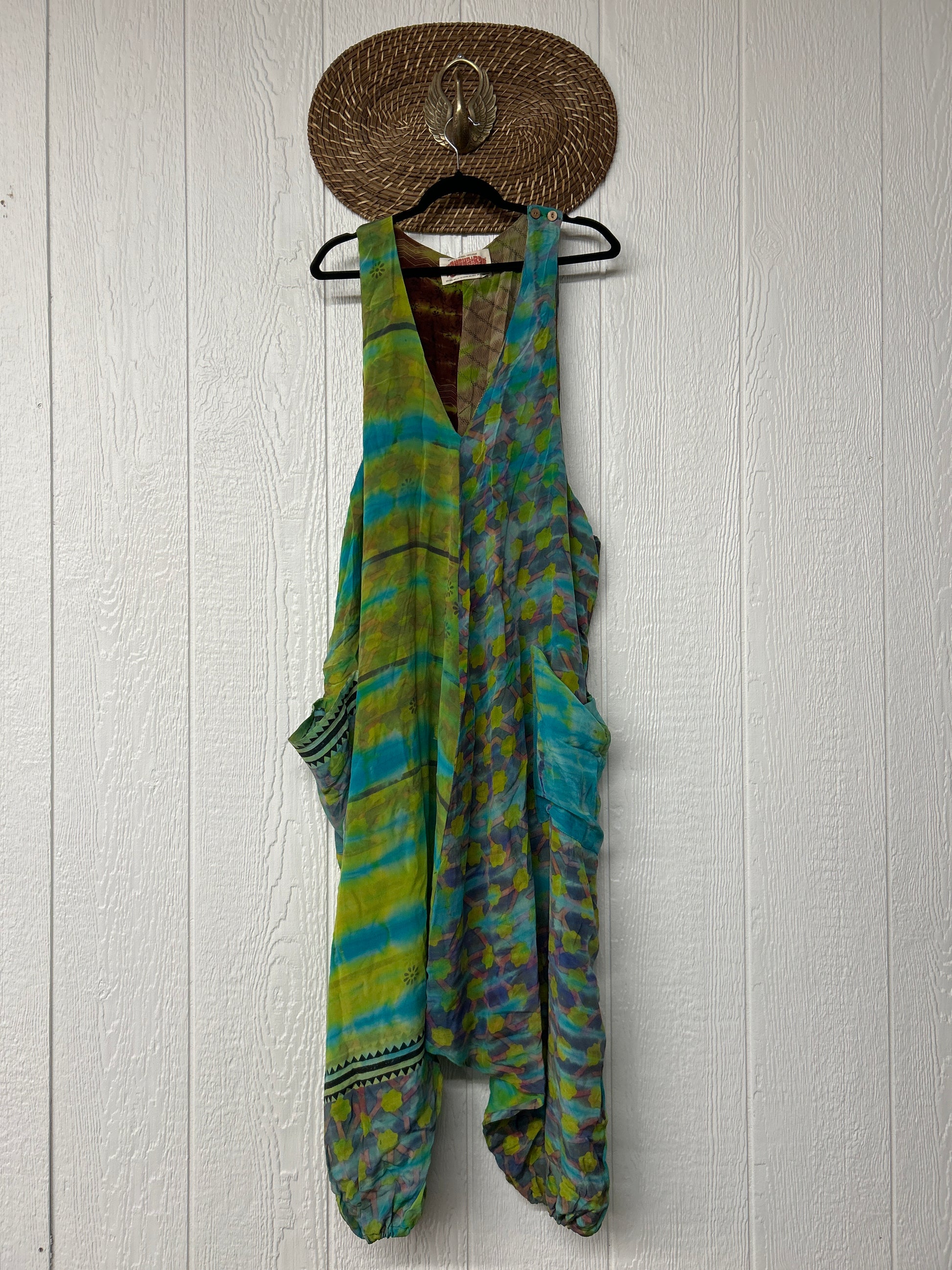 Crafted from our ultra lux vintage double crepe sari, this floaty wonder features a moderate drop couch, elastic at the legs, slouchy pockets