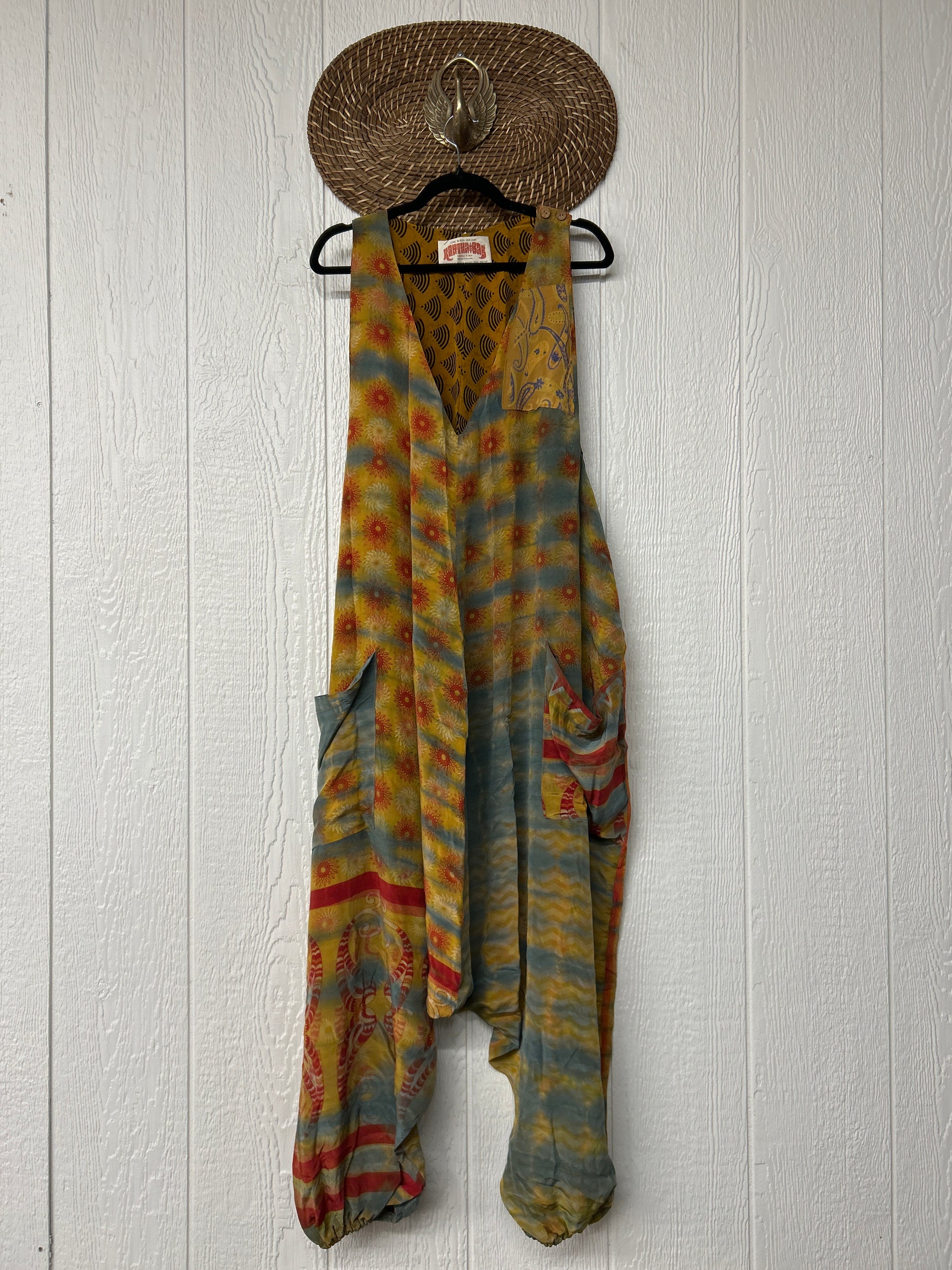 Crafted from our ultra lux vintage double crepe sari, this floaty wonder features a moderate drop couch, elastic at the legs, slouchy pockets