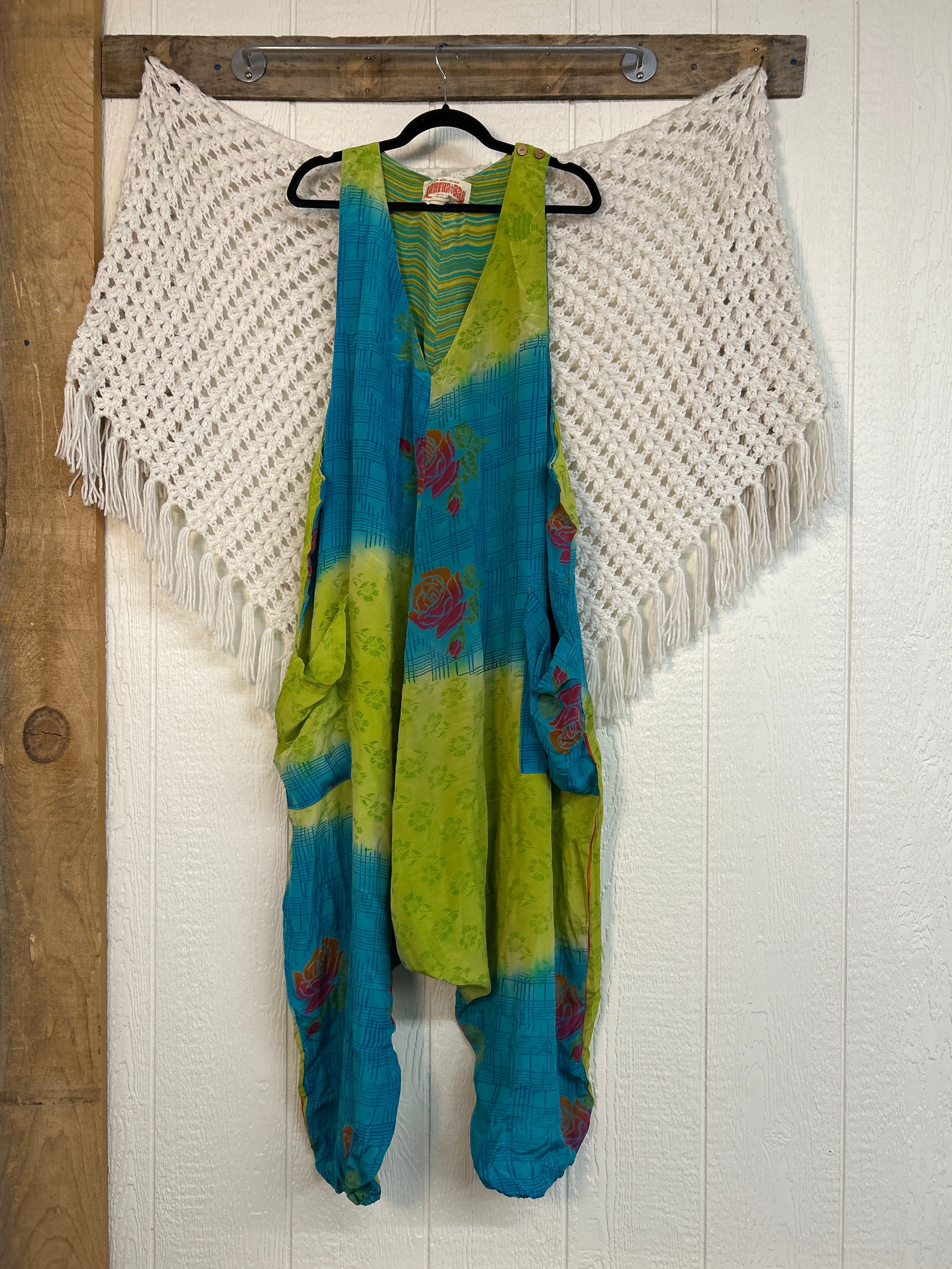 Crafted from our ultra lux vintage double crepe sari, this floaty wonder features a moderate drop couch, elastic at the legs, slouchy pockets