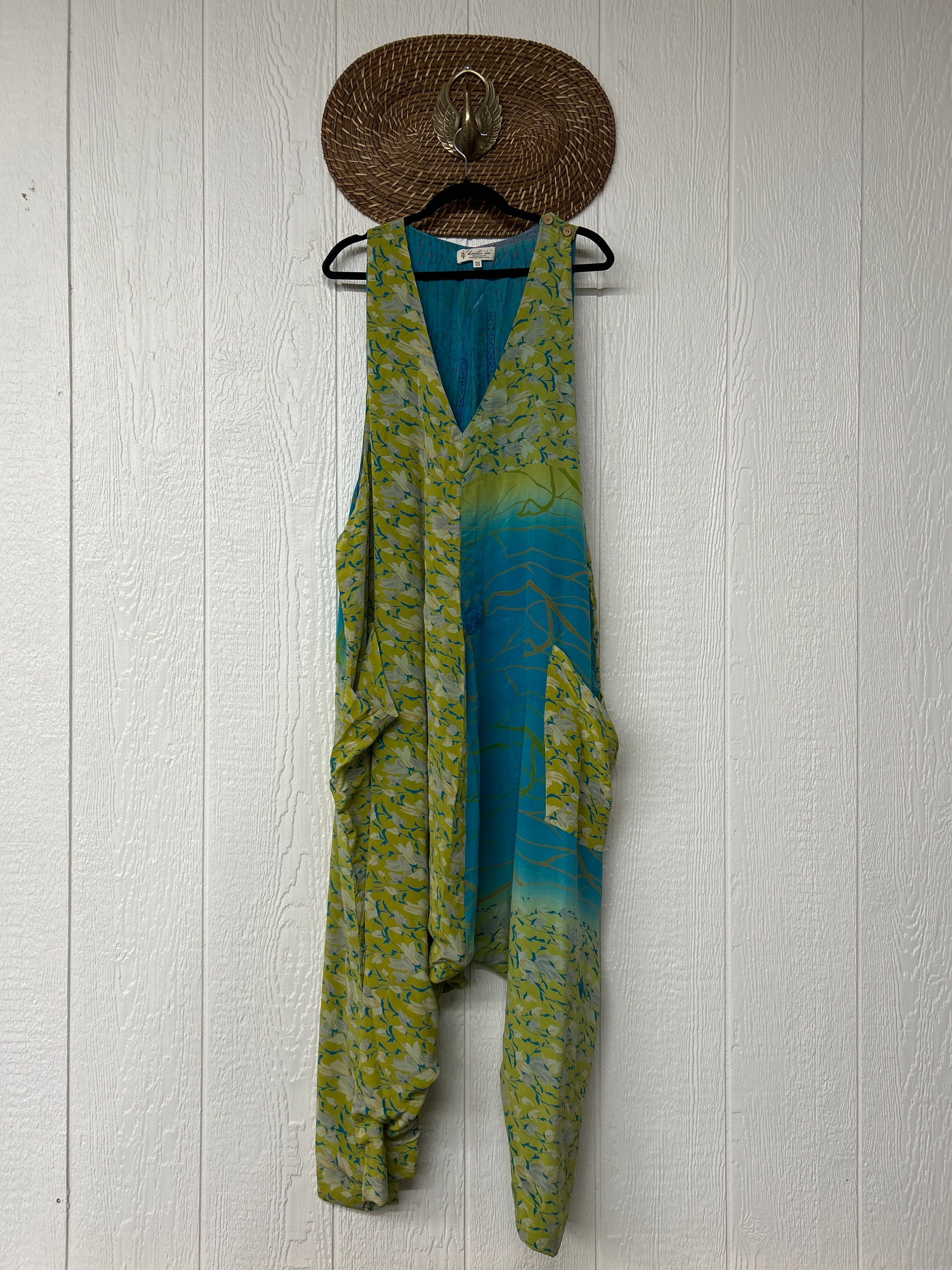 Crafted from our ultra lux vintage double crepe silk sari, this floaty wonder features a moderate drop couch , slouchy pockets