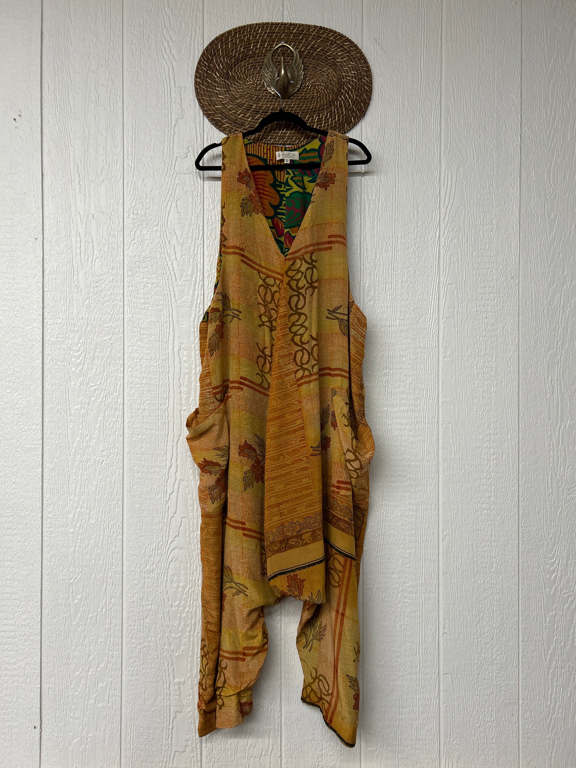 Crafted from our ultra lux vintage double crepe silk sari, this floaty wonder features a moderate drop couch , slouchy pockets