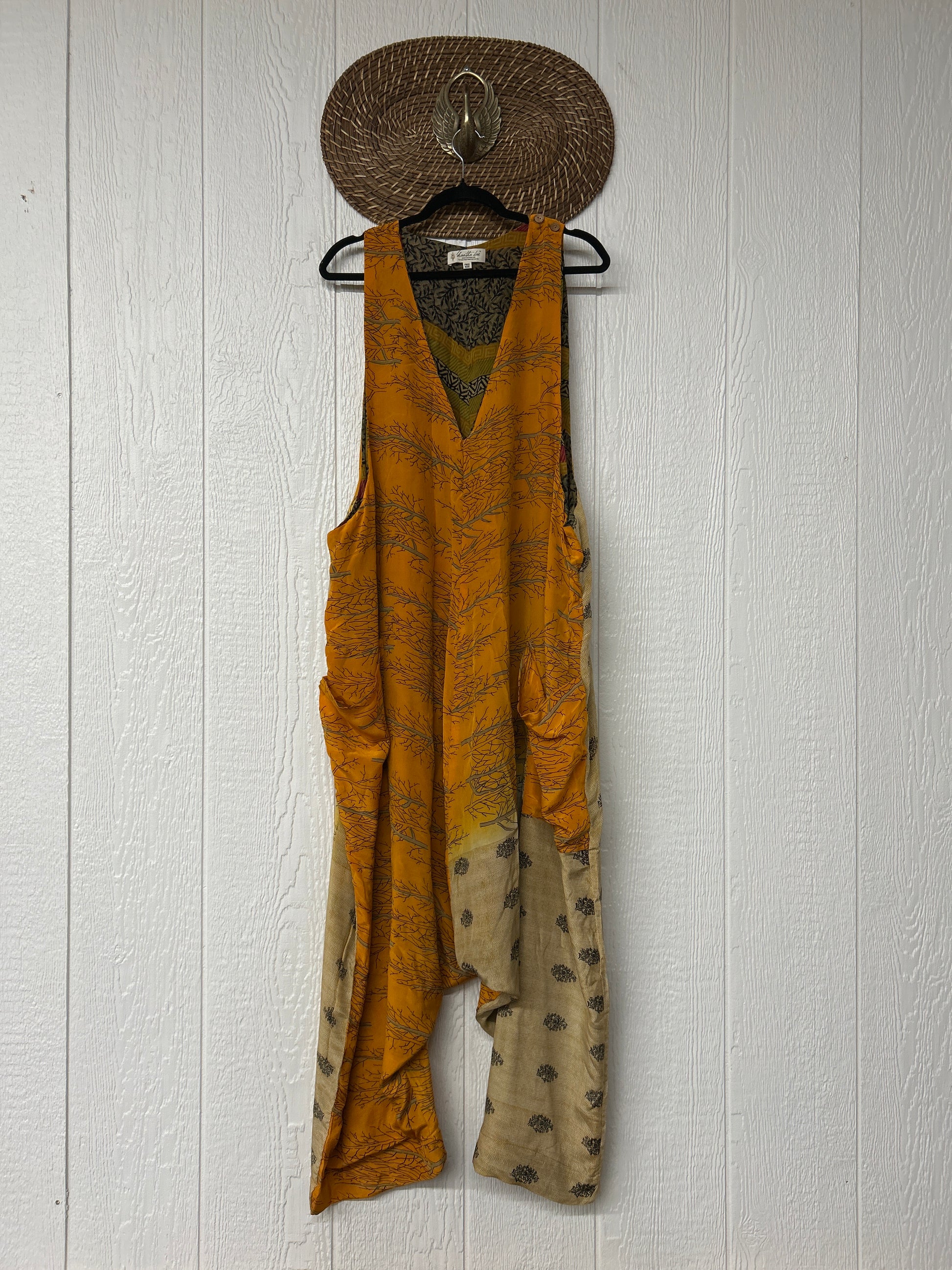 Crafted from our ultra lux vintage double crepe silk sari, this floaty wonder features a moderate drop couch , slouchy pockets