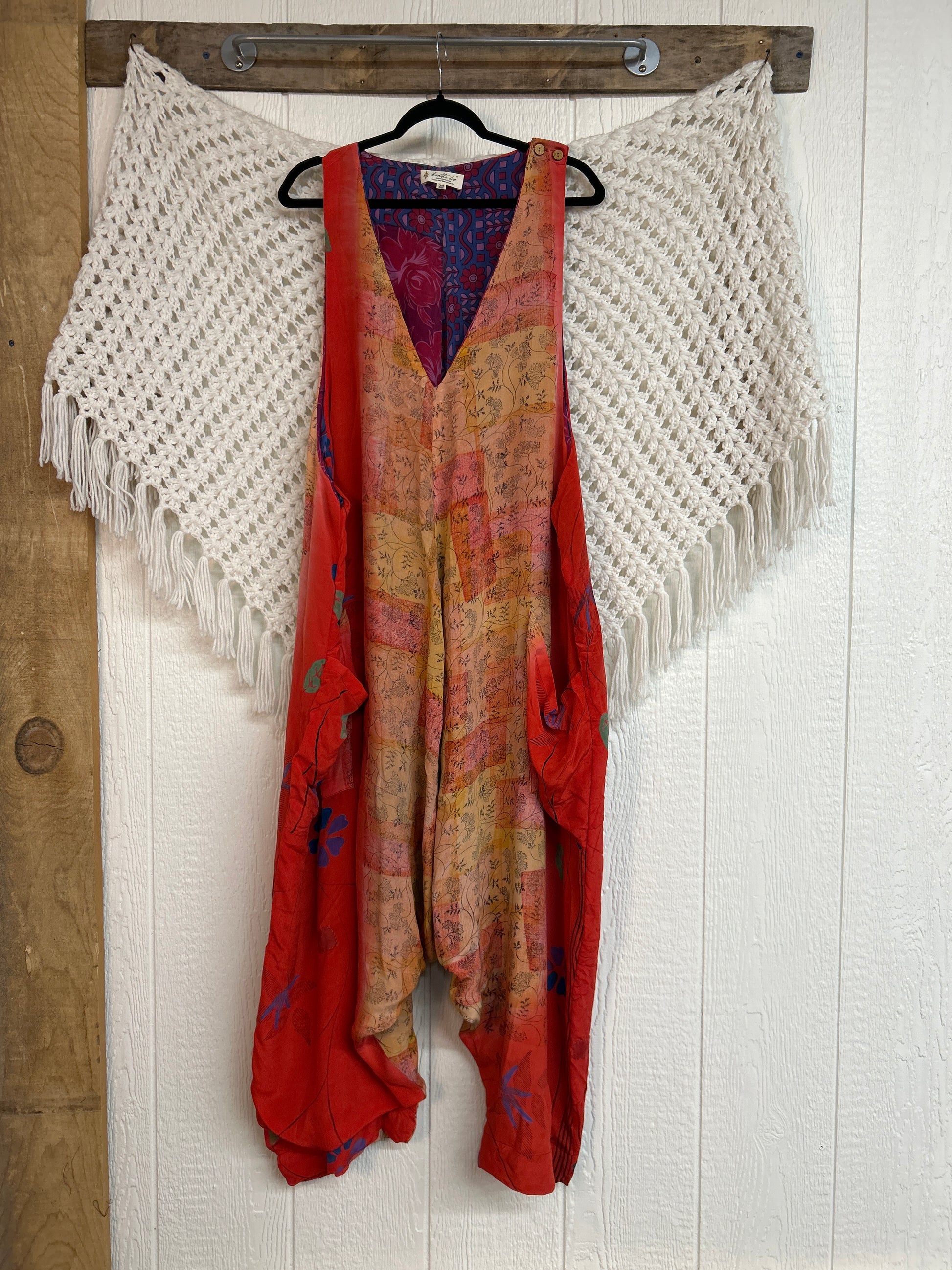 Crafted from our ultra lux vintage double crepe silk sari, this floaty wonder features a moderate drop couch , slouchy pockets